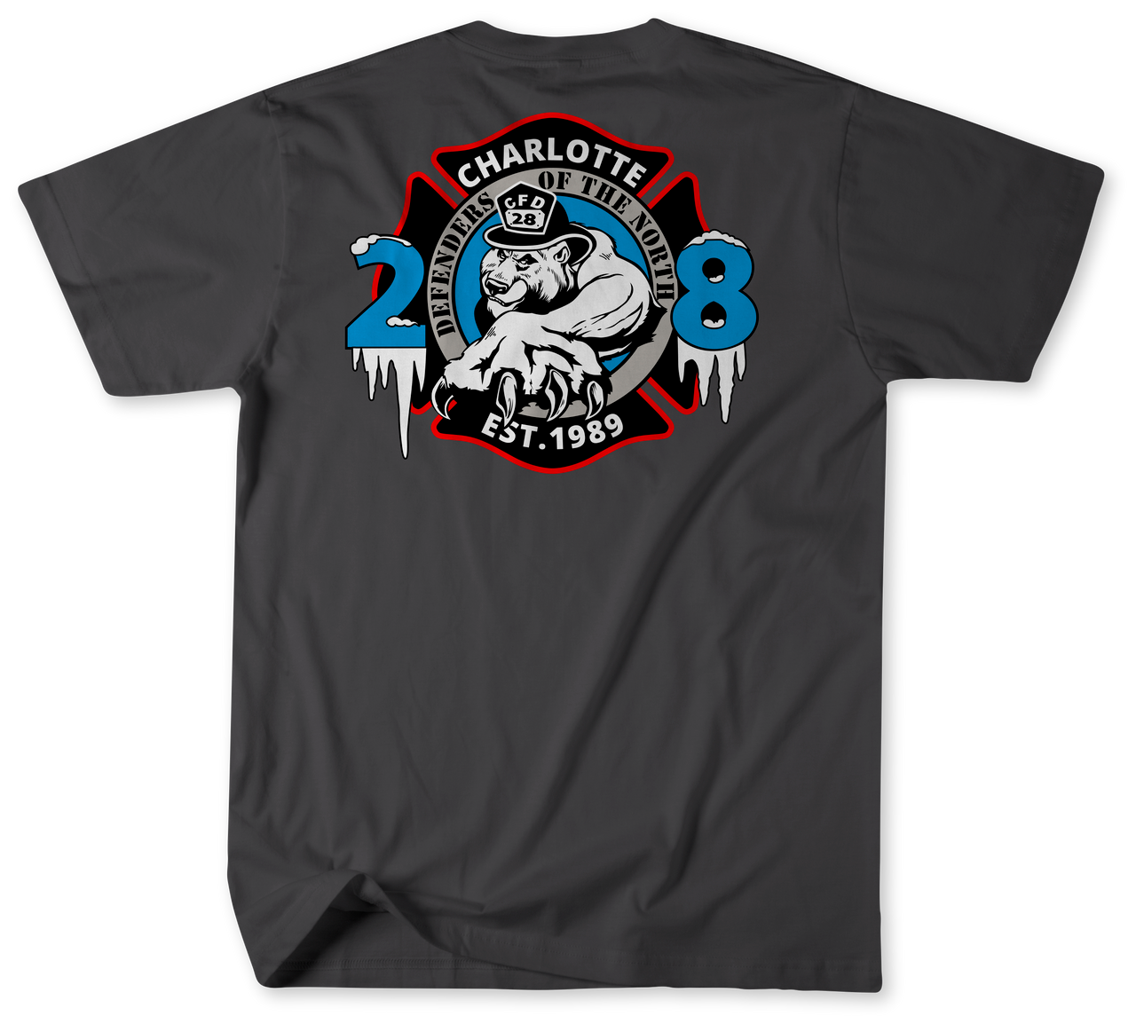 Unofficial Charlotte Fire Department's Fire Station 28 Shirt- made for the bravest of the brave! Those who are brave enough to march into the flames should wear the apparel that proudly represents the Fire Station 28. It will make any firefighter proud and put a sparkle even in the midst of the most dangerous situations. Made from Gildan Ring spun shirts, this exclusive Charlotte Fire Station 28 Shirt speaks of strength, courage and boldness– the very essence of being a firefighter. It’s a tribute to those brave men and women who take on the blazing flames and raging smoke with only their courage! Grab your shirt and show your support for the brave firefighters of Northlake!