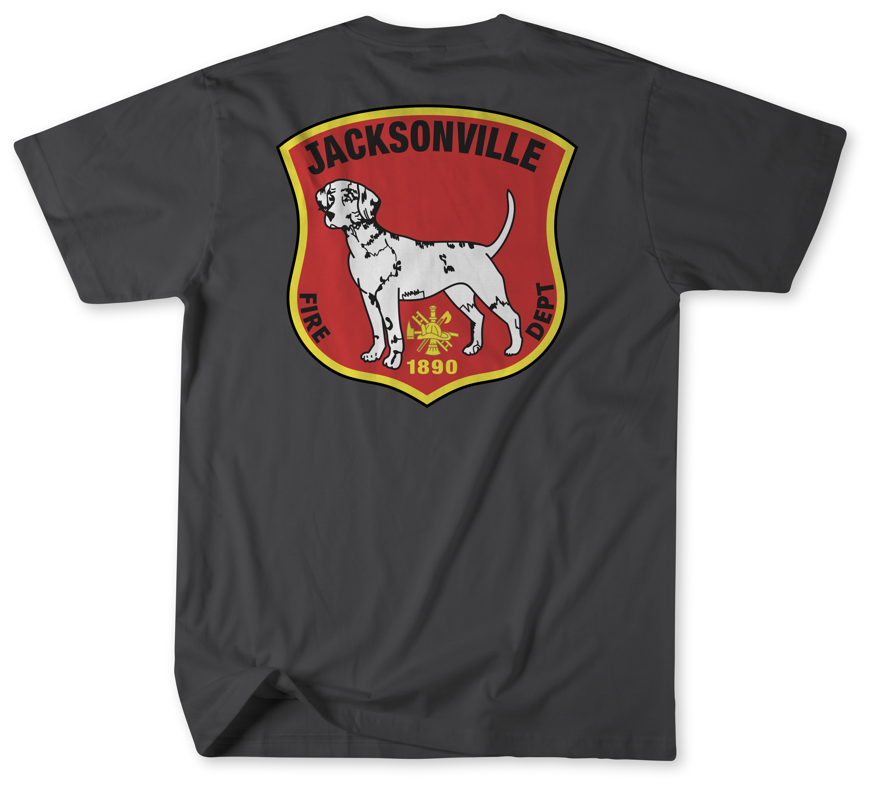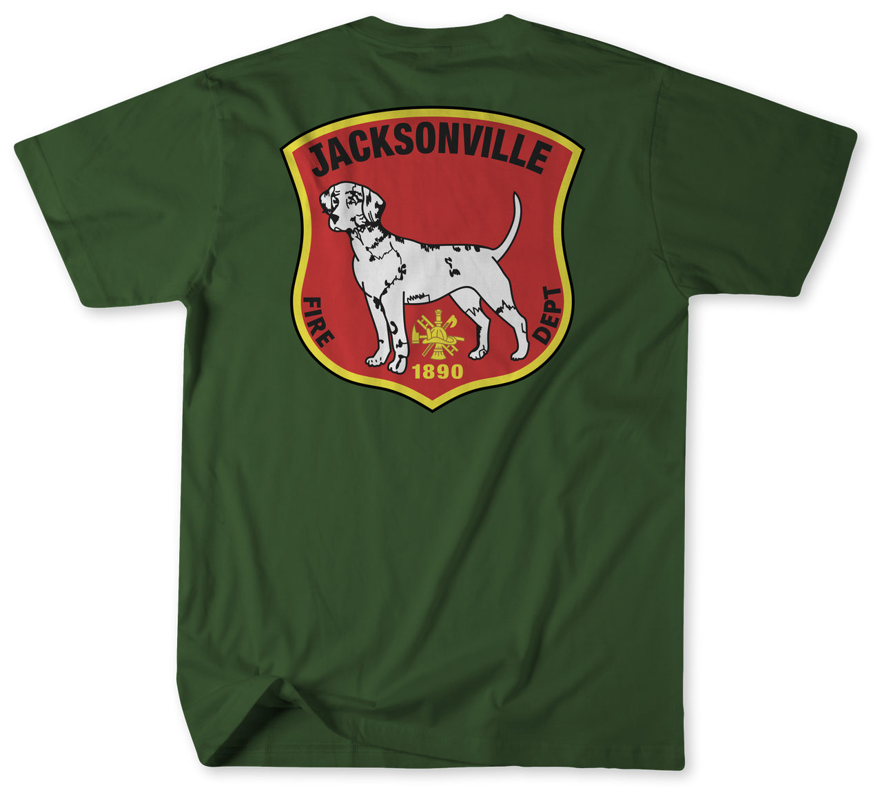 The front of the shirt features the department logo printed on the left chest, giving it a clean and authentic firehouse appearance suitable for everyday wear, station visits, events, and casual use.