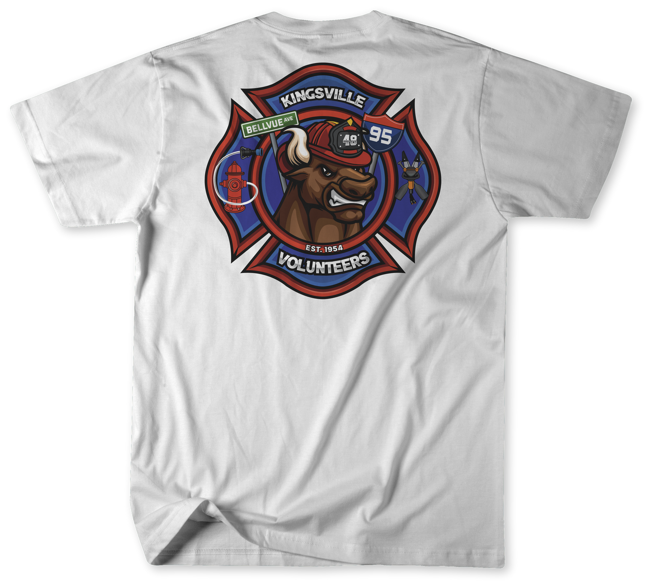 Station 48 operates Engine 481, Medic 485, Squad 483, Tanker 488 and Boat 48, making it a versatile company ready for structural fires, EMS responses, water incidents, and rural operations. This shirt pays tribute to those crews and the volunteers who keep the station mission-ready.