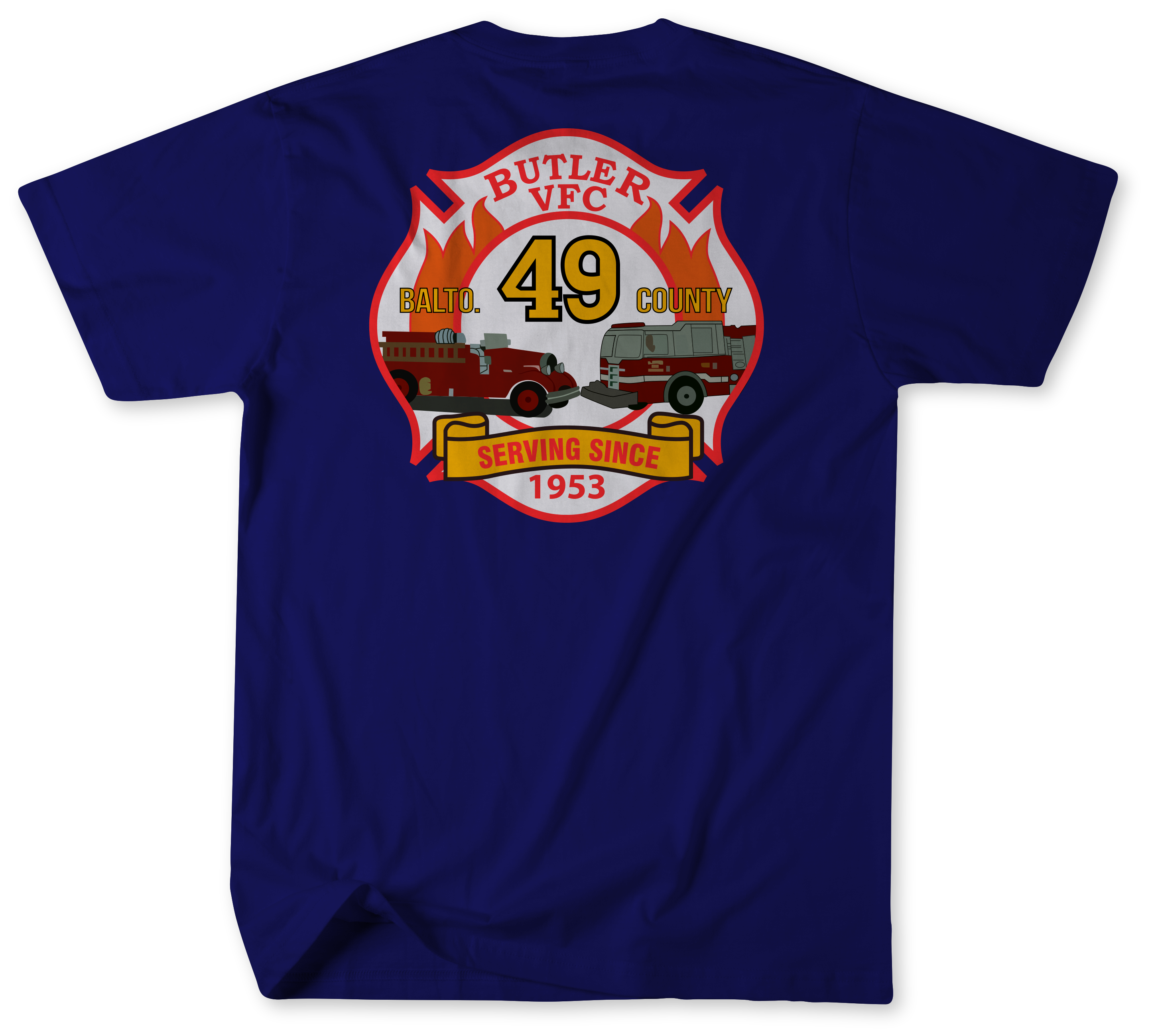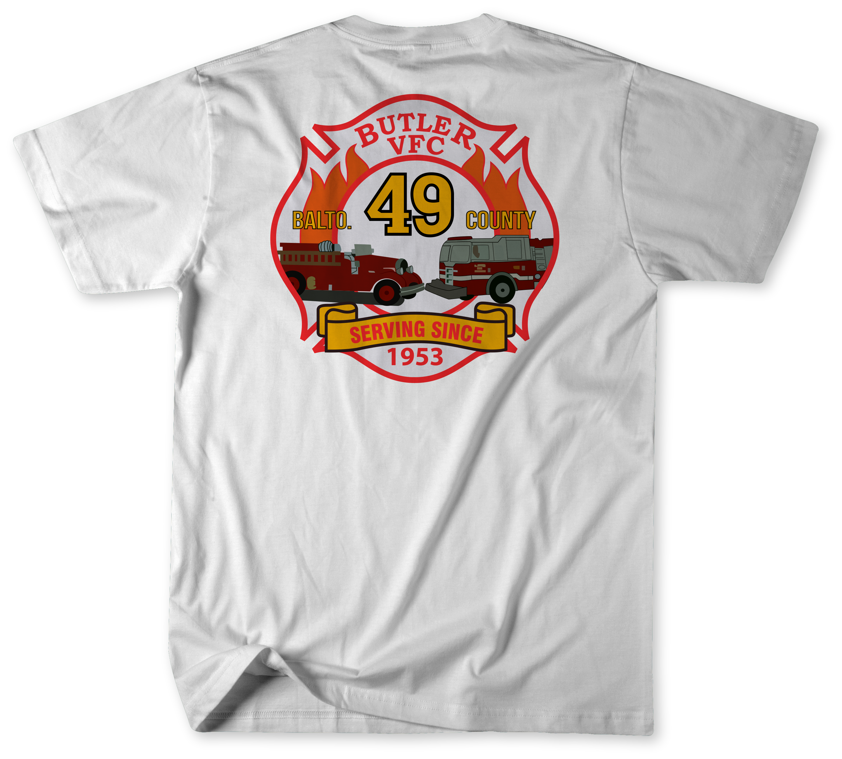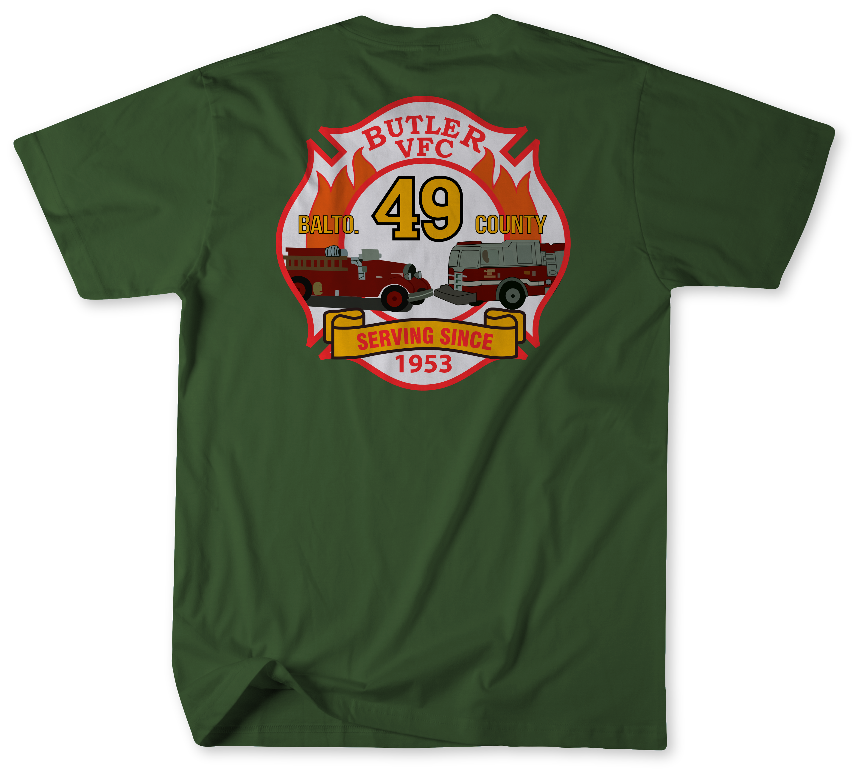 Show your pride in Baltimore County’s volunteer fire service with the Unofficial Station 49 Shirt, honoring the members of the Butler Volunteer Fire Company. This shirt recognizes the firefighters and EMS personnel who protect the Butler community every day and the apparatus that answers the call, including Engine 491, Tanker 491, and Brush 492.