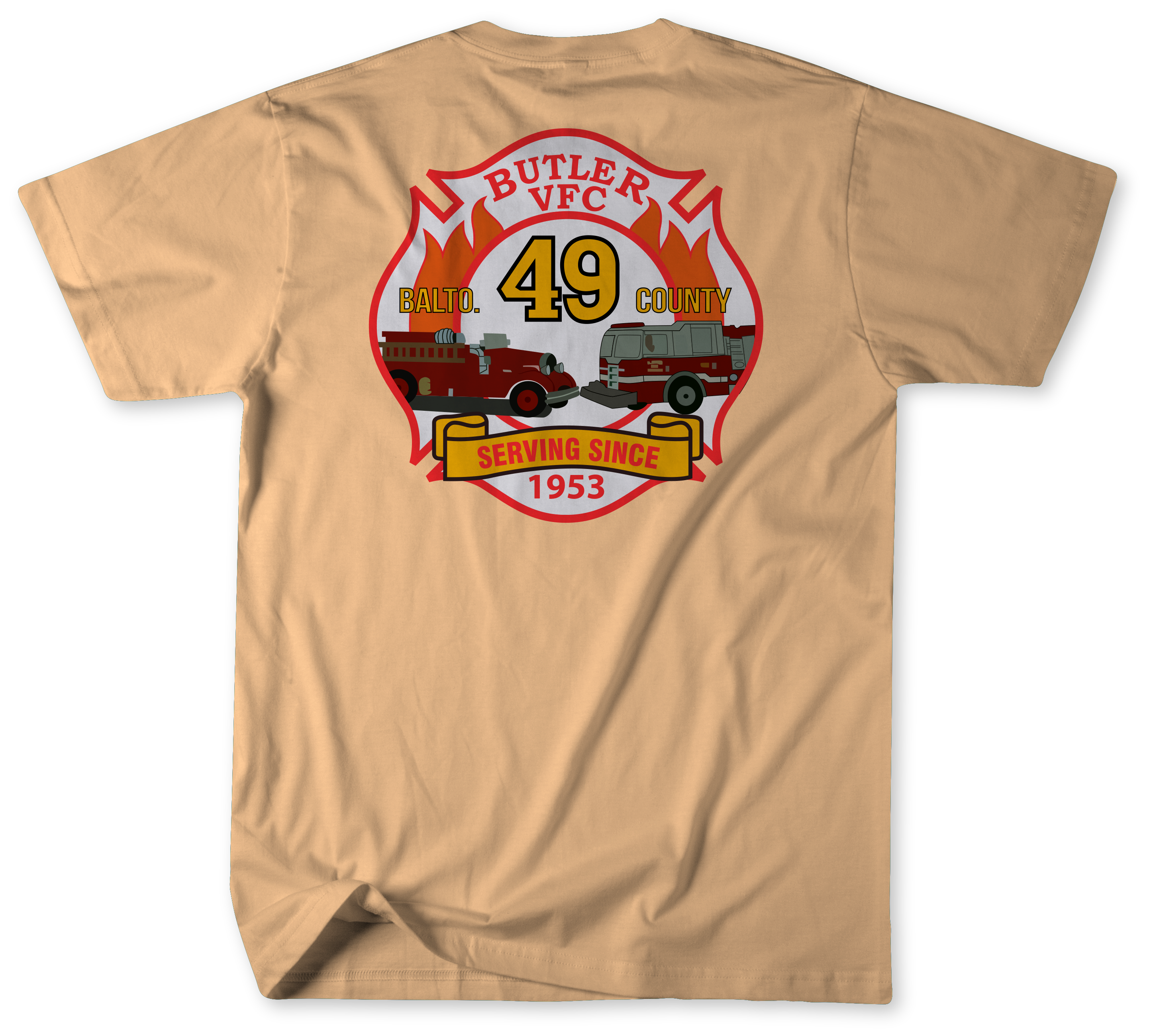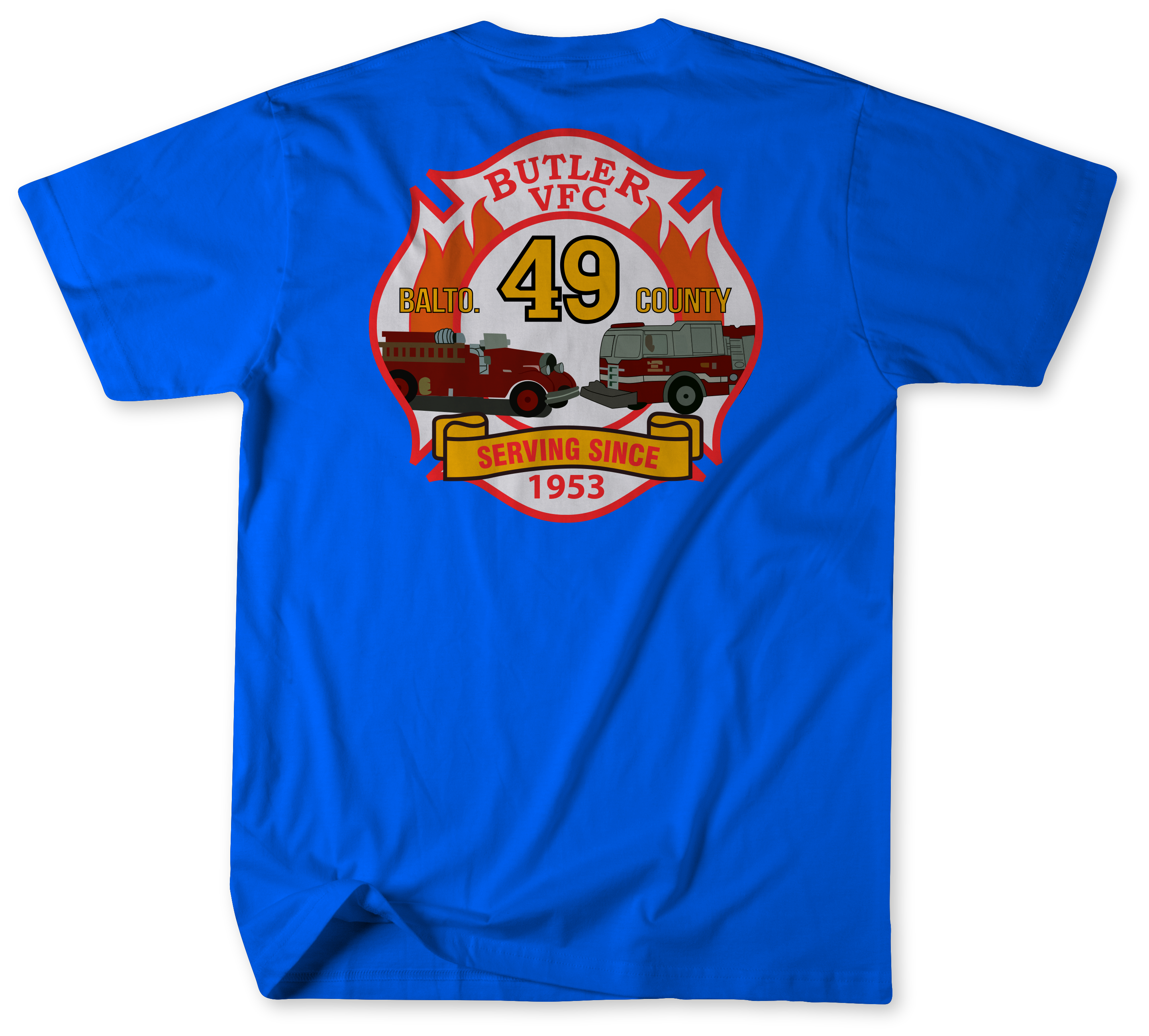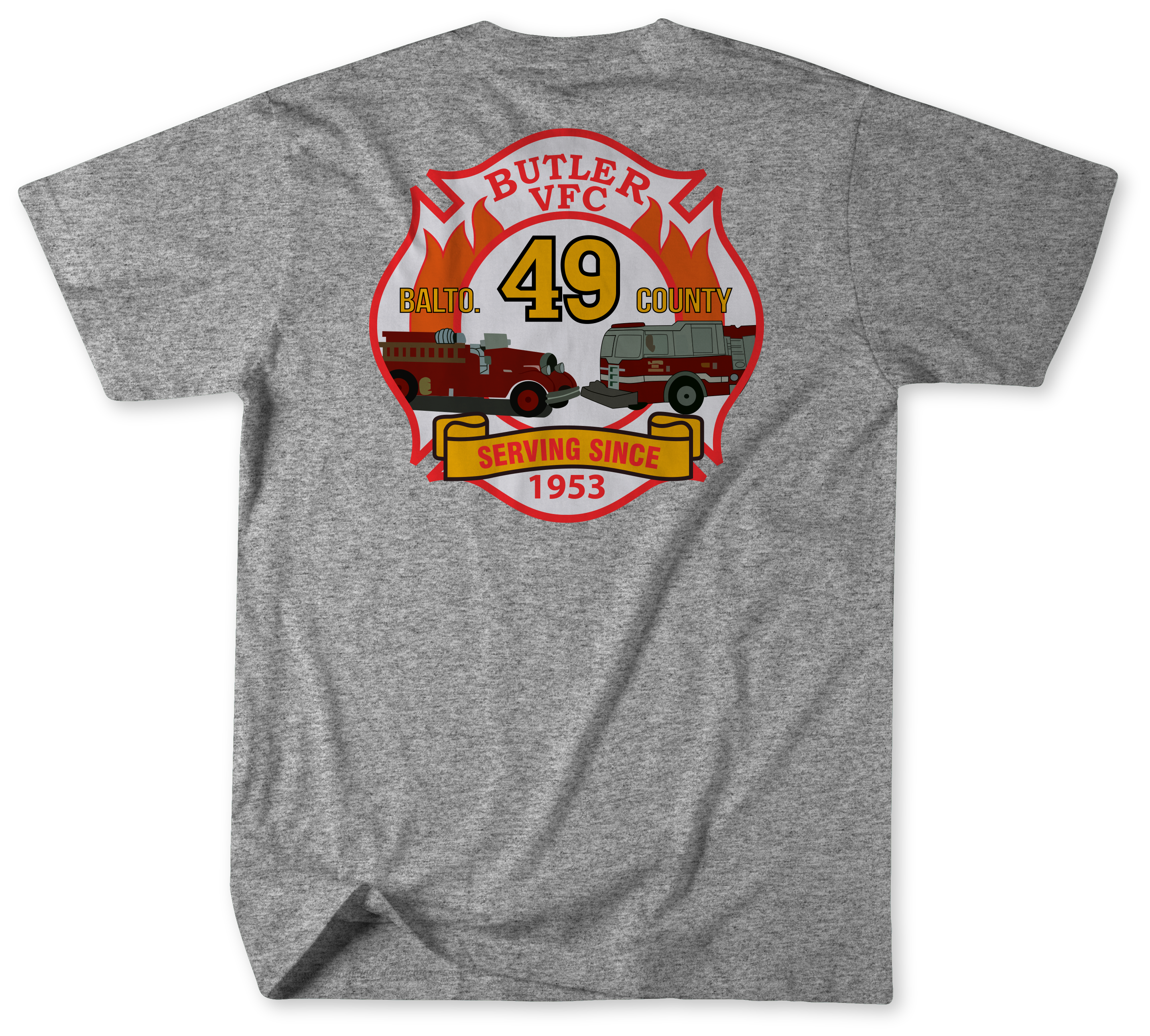 Show your pride in Baltimore County’s volunteer fire service with the Unofficial Station 49 Shirt, honoring the members of the Butler Volunteer Fire Company. This shirt recognizes the firefighters and EMS personnel who protect the Butler community every day and the apparatus that answers the call, including Engine 491, Tanker 491, and Brush 492.