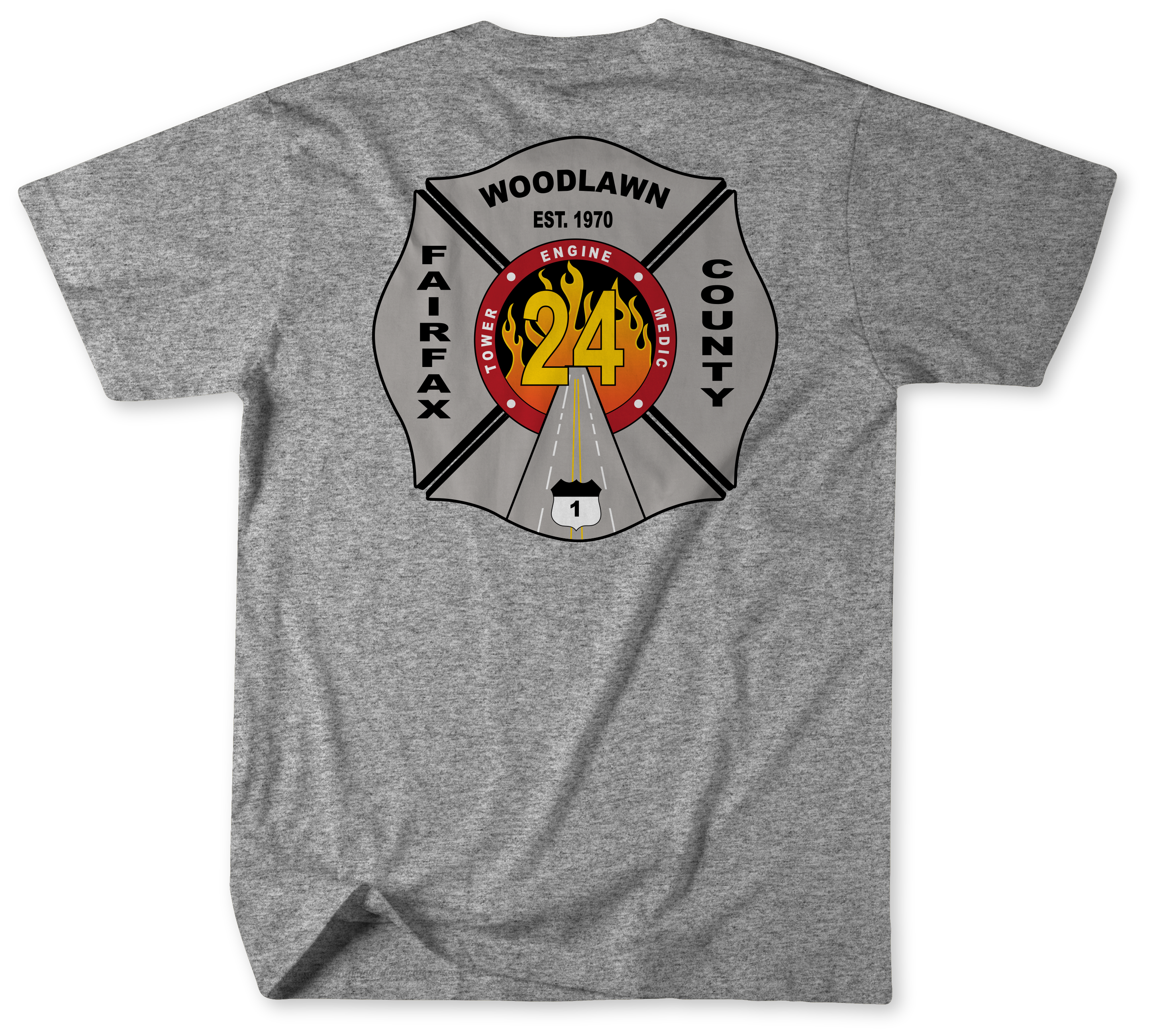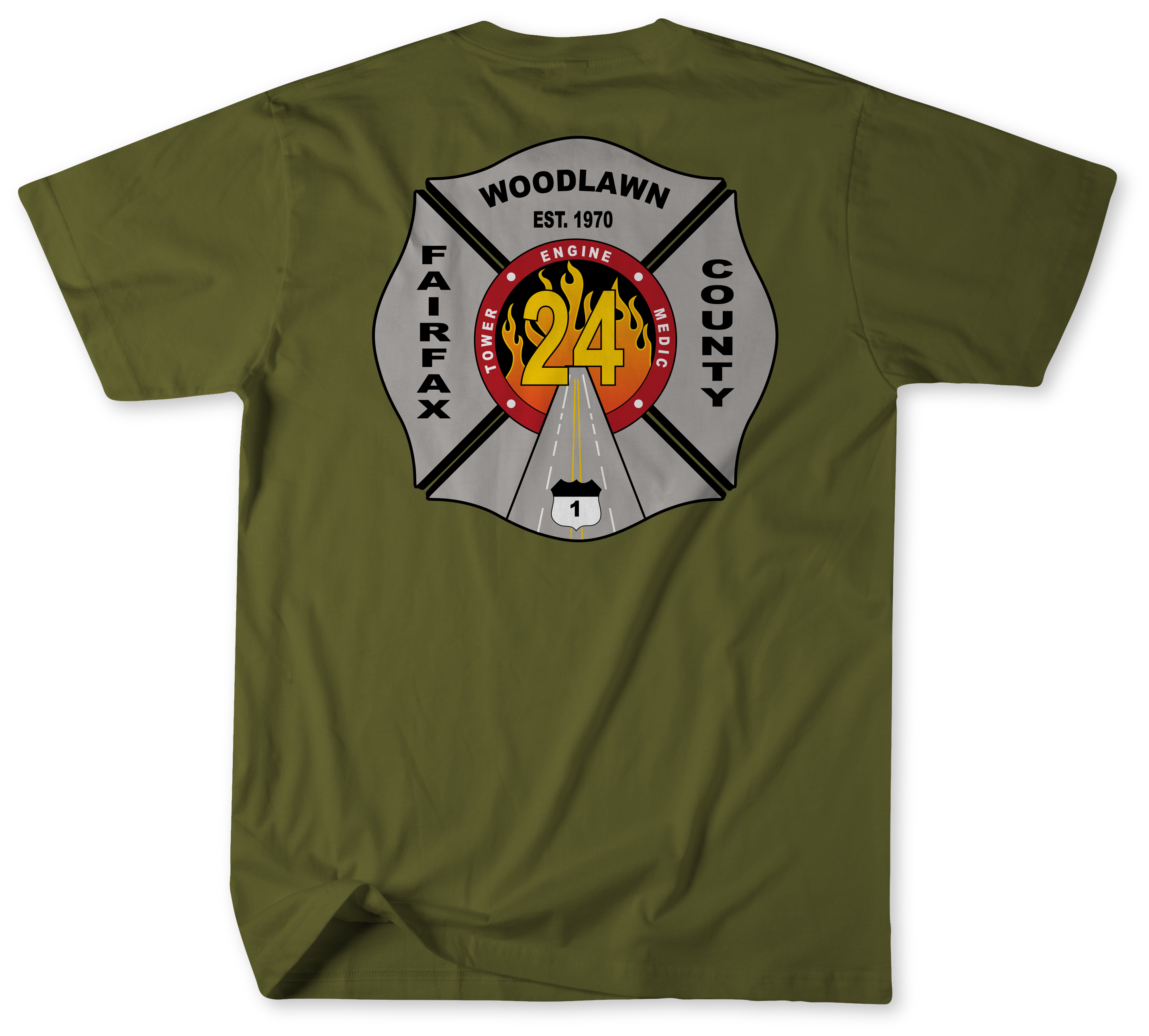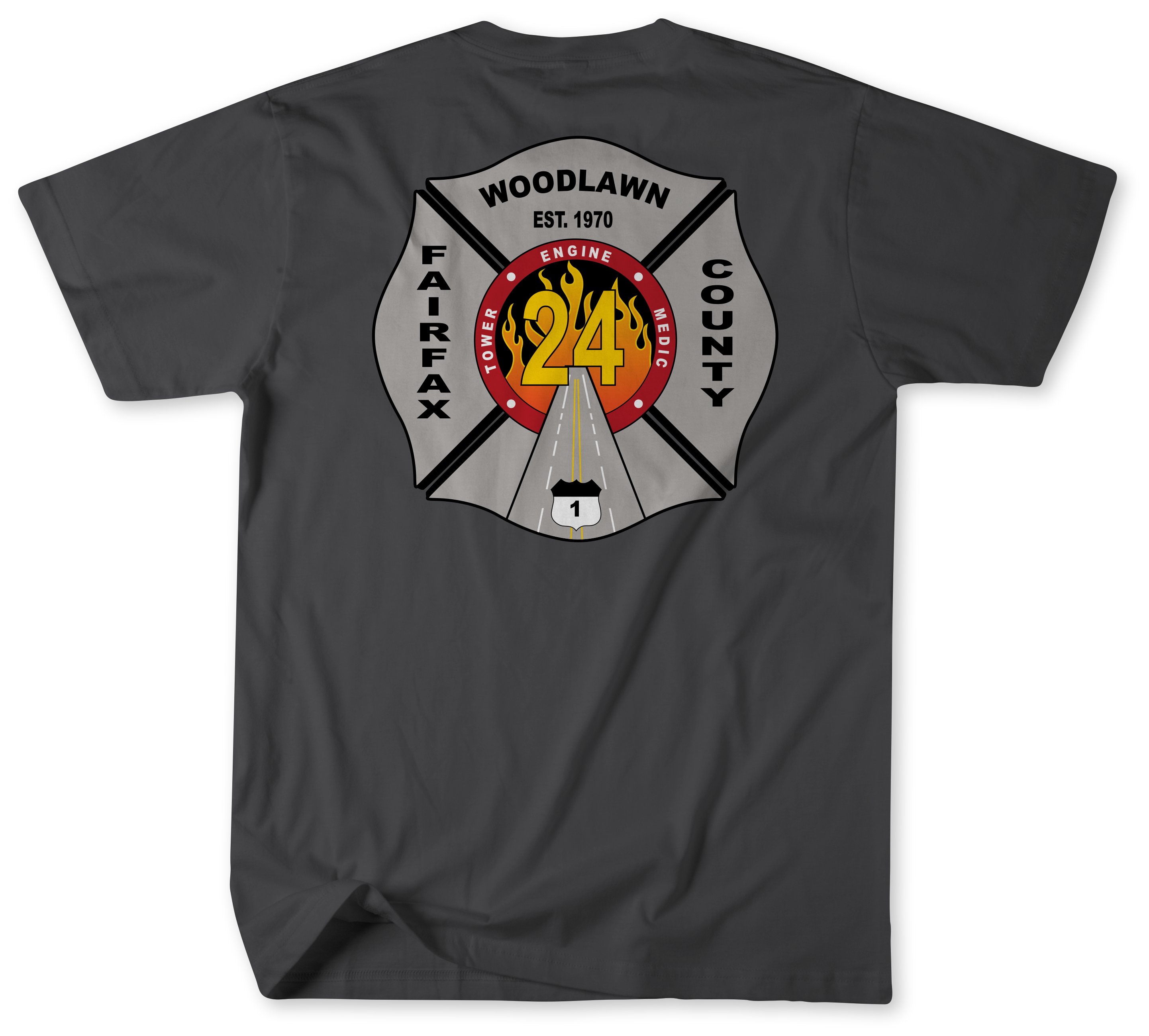 Station 24 proudly houses Engine 424, Tower 424, and Medic 424—units known for their commitment and readiness. Designed for everyday wear or as part of your fire service collection, this shirt highlights the spirit of Woodlawn’s emergency responders.