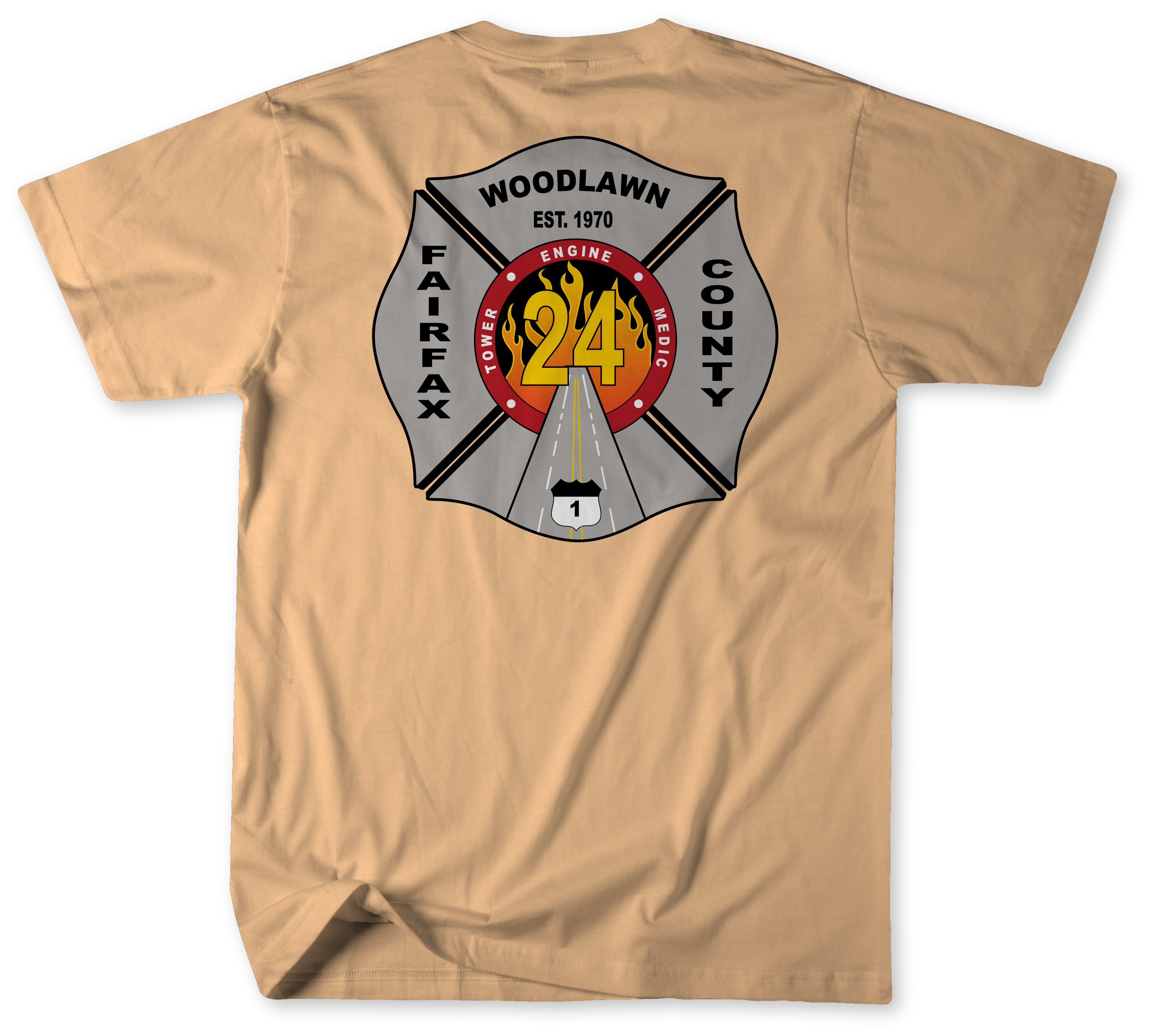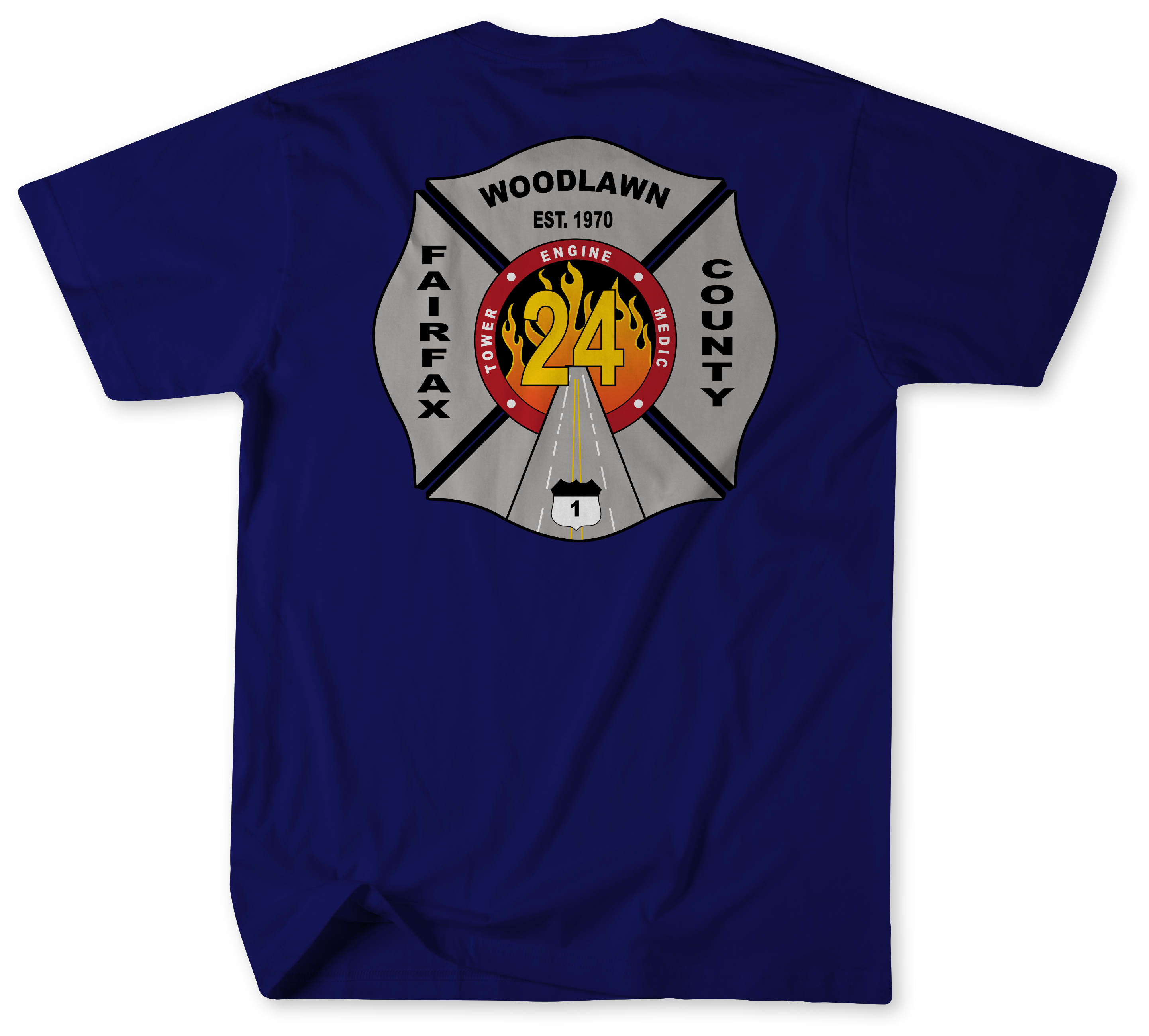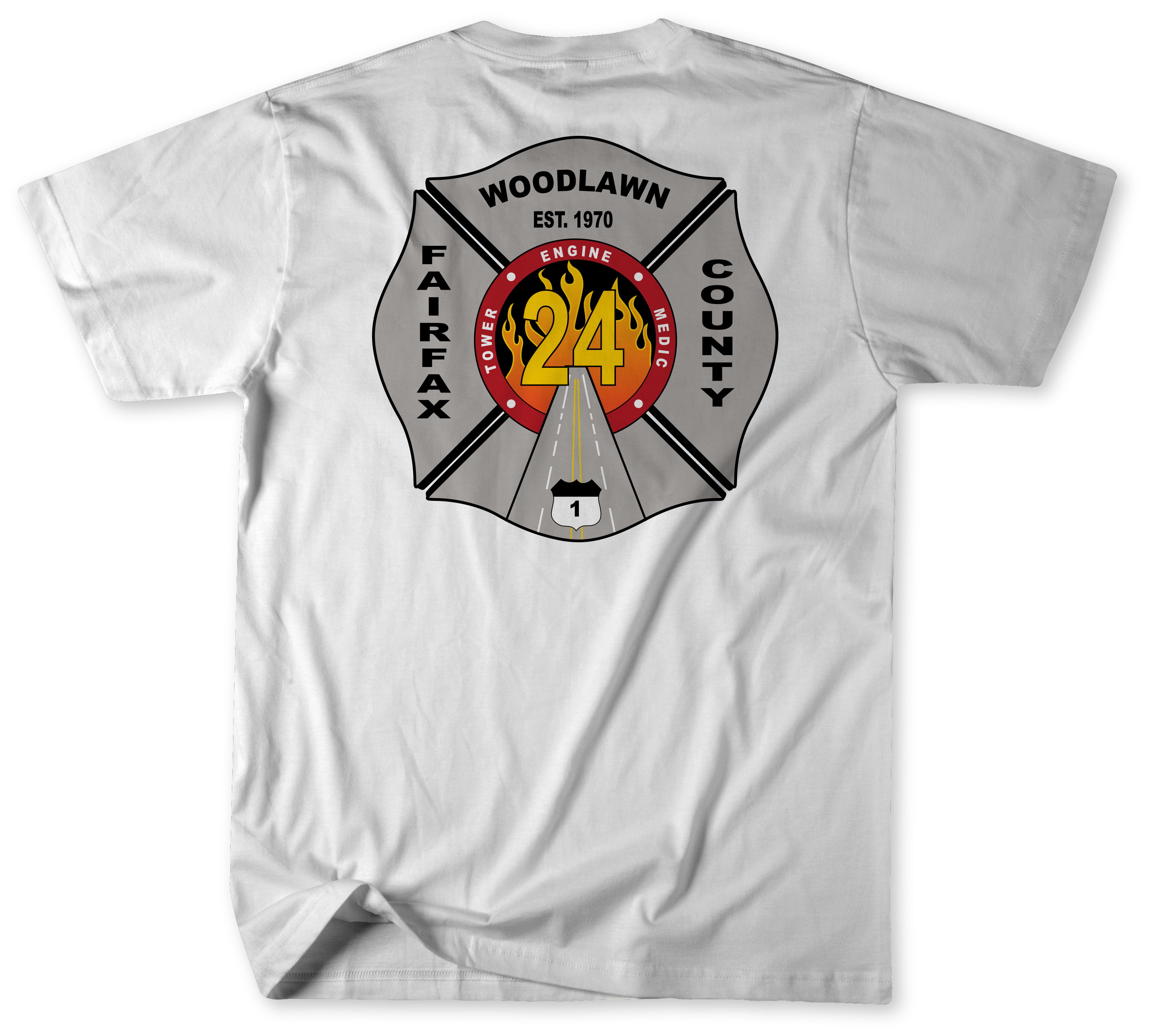 Station 24 proudly houses Engine 424, Tower 424, and Medic 424—units known for their commitment and readiness. Designed for everyday wear or as part of your fire service collection, this shirt highlights the spirit of Woodlawn’s emergency responders.