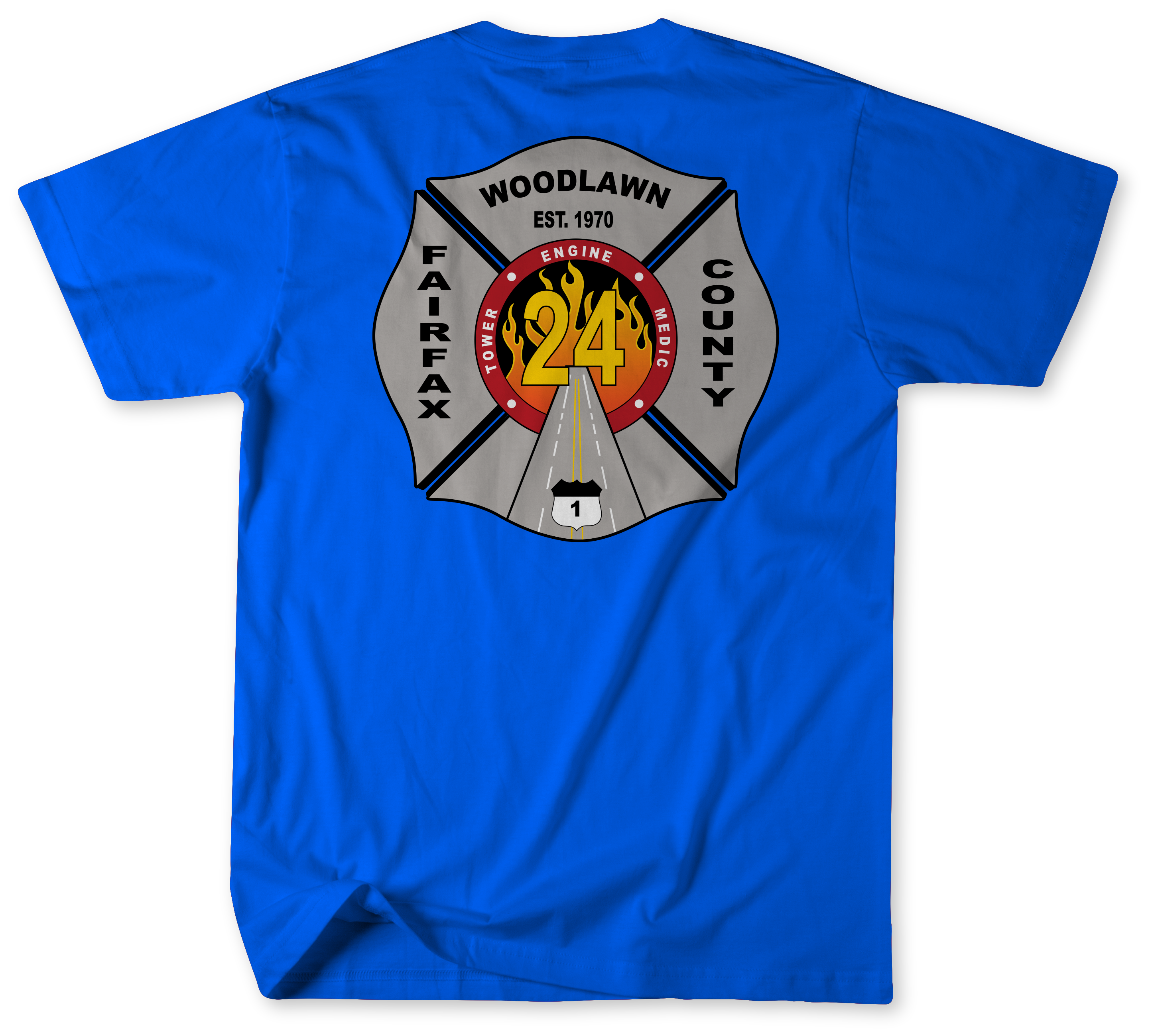 Show your support for the dedicated crews of Fairfax County Fire Rescue Station 24 with this premium, unofficial Station 24 shirt. Crafted from soft, durable ring-spun cotton, this shirt delivers long-lasting comfort and style while honoring the hardworking teams who serve the Woodlawn community. Available in 8 bold colors, it’s the perfect choice for firefighters, supporters, families, and collectors of station apparel.