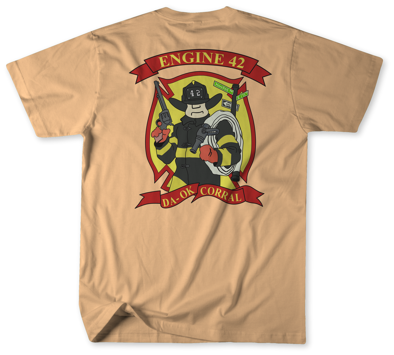 Loading... Please wait...Show your respect for one of the Bronx’s most recognized firehouses with our Unofficial FDNY Engine 42 Shirt. Representing Engine 42, located at Monroe Avenue and East 175th Street in the Bronx and famously known as “DA-OK Corral,” this design honors the grit, history, and pride of New York City firefighters.