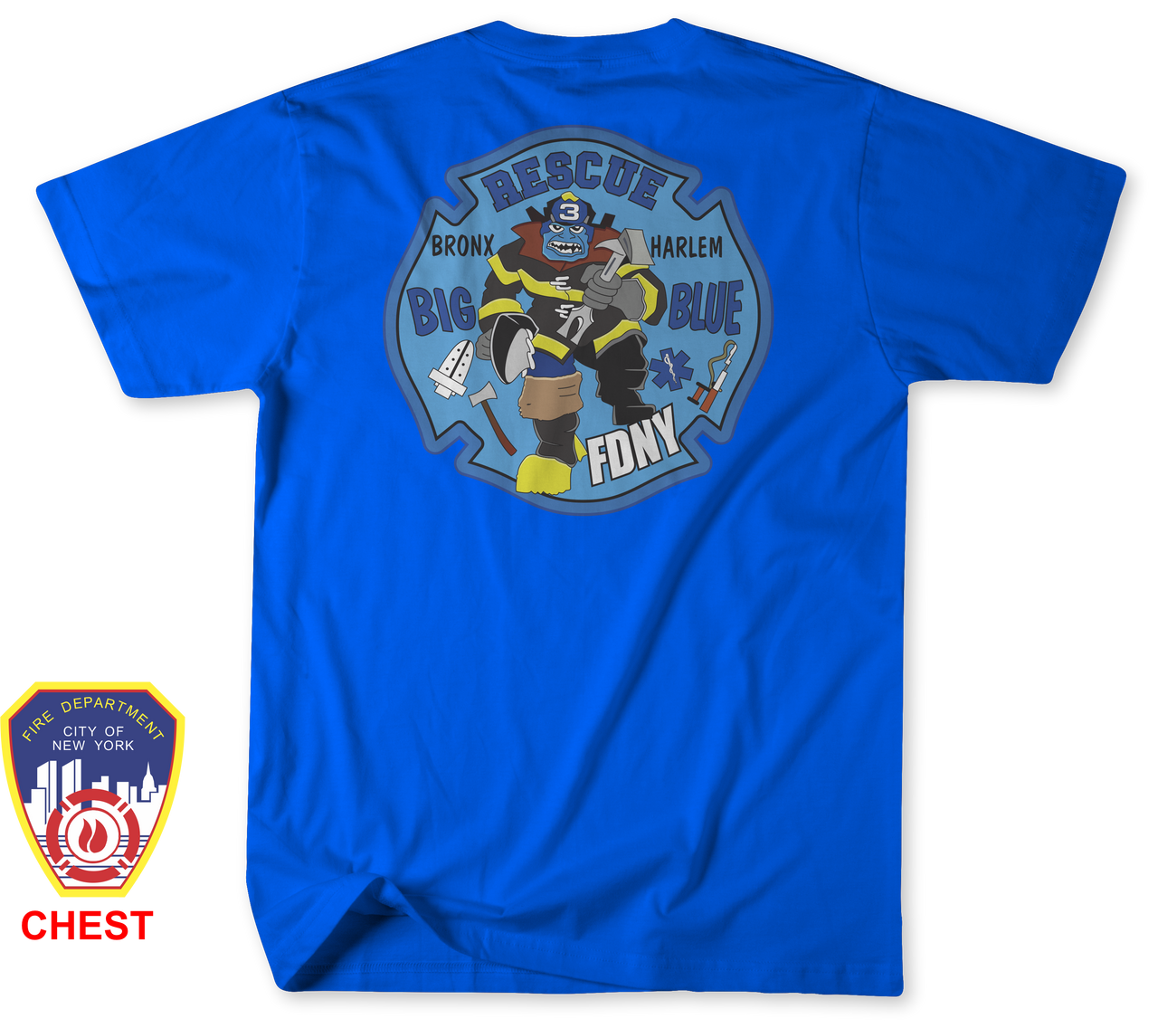 This shirt was designed for firefighters, supporters of the fire service, and anyone who respects the dedication and bravery of FDNY’s rescue companies. While the design closely reflects the identity and tradition of Rescue 3, the artwork is an unofficial tribute created to honor the company and the firefighters who serve.