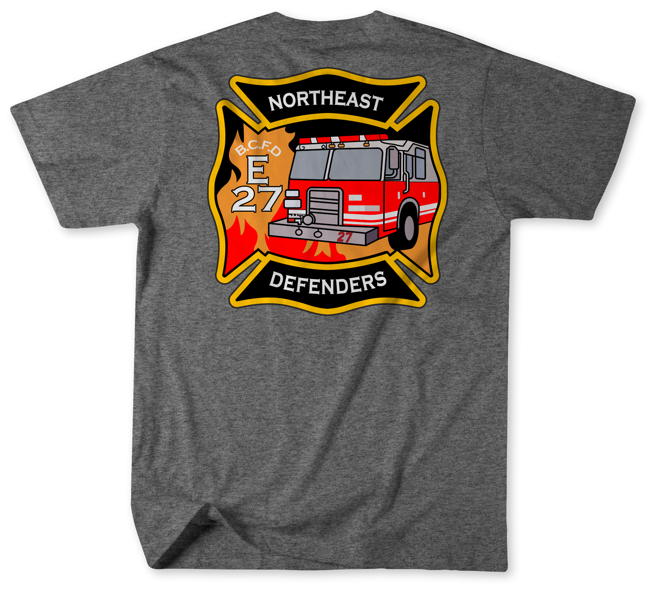Welcome to the Unofficial Baltimore City Fire Department Engine 27 Shirt! As a tribute to one of the toughest and most dedicated fire departments in the country, this shirt is a must-have for any Baltimore firefighter or fan. Engine 27, located in the first battalion, is known for its fearless and relentless rescue efforts in the Belair-Edison neighborhood. And now, you can proudly represent this iconic firehouse with our high-quality shirt.