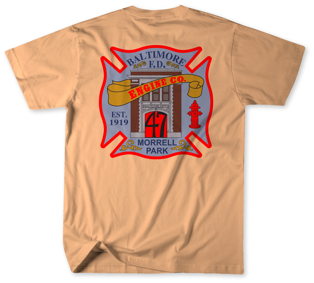 Get ready to show your support and represent the courageous men and women of the Baltimore City Fire Department's Engine 47 with this official Unofficial Baltimore City Fire Department Engine 47 Shirt! As a part of the 3rd battalion, Engine 47 is always ready to respond to any emergency in their first due territory, Morrell Park. And now, you can proudly wear this shirt made from high quality Gildan Ring spun fabric. With 11 different color options, you can choose the one that best suits your style and personality. It's not just a shirt, it's a statement.