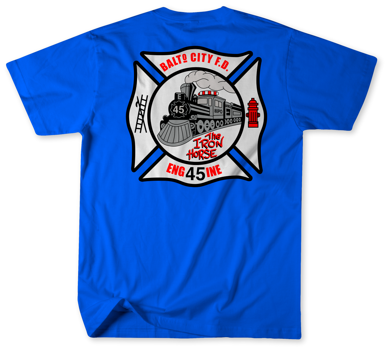 Introducing the Unofficial Baltimore City Fire Department Engine 45 Shirt - the perfect way to show your support for one of the bravest departments in the country! Engine 45 is not just any ordinary firehouse, it is also home to Medic 14 and together they form a dynamic duo in the Fifth Battalion. With this shirt, you can proudly represent Engine 45 and all the fearless firefighters who put their lives on the line every day to protect the city of Baltimore.