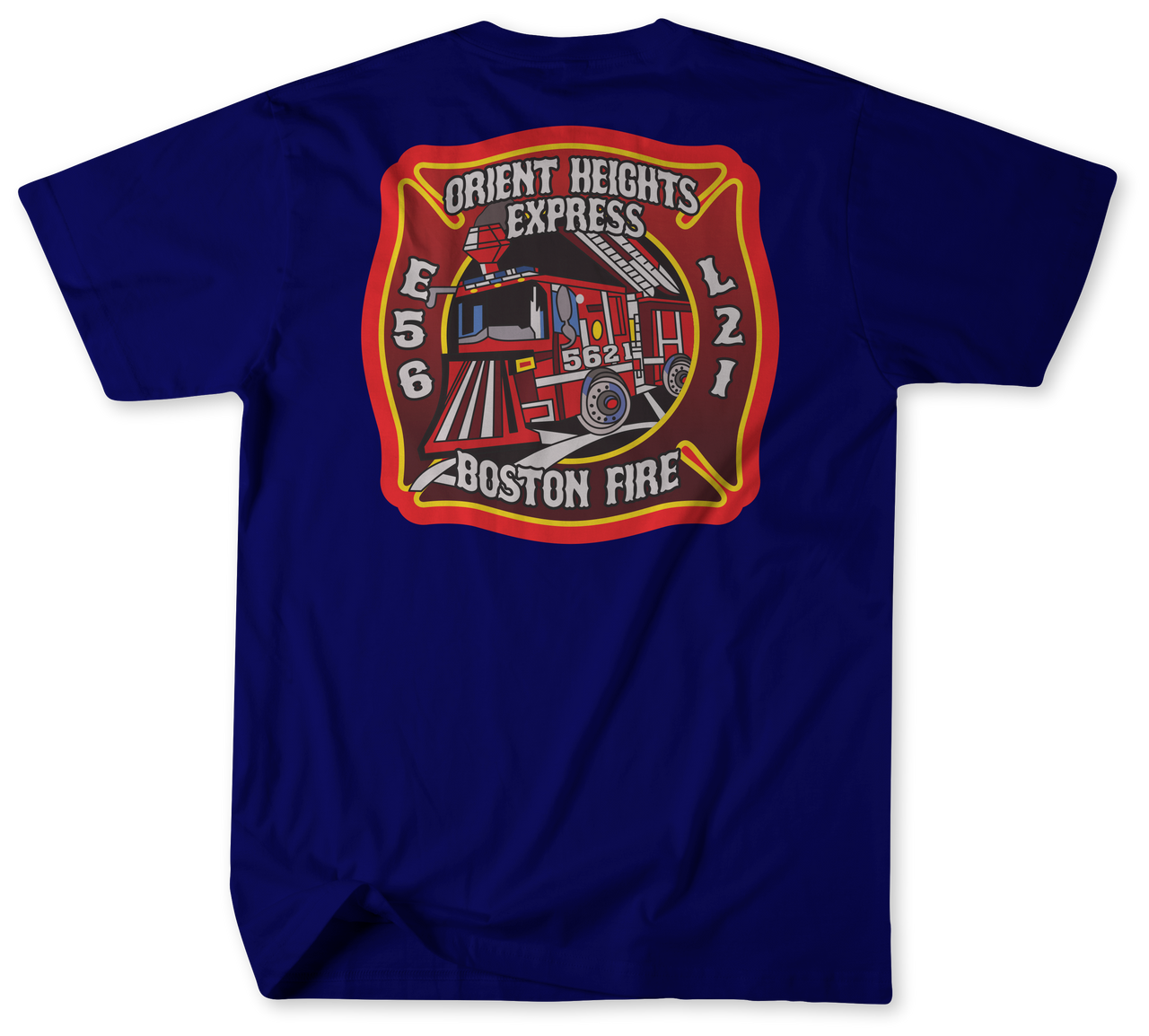 Support your heroes with the Unofficial Boston Fire Department Station 56 shirt! Designed to honor the brave members of Engine 56 and Truck 21 that serve the Neighbors of Orient Heights in East Boston - this special edition shirt pays tribute to the selfless heroes who put their lives on the line every day.