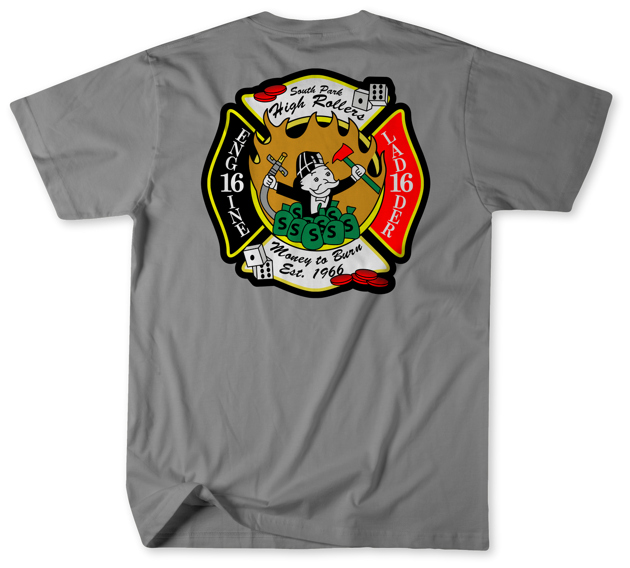 Show your pride and admiration for the heroes of Engine 16 and Ladder 16 with the Unofficial Charlotte Fire Department Fire Station 16 Shirt! This soft and stylish Gildan Ring-spun shirt shows the brave members of Charlotte Fire Station 16 you’ve got their backs. This shirt is perfect for cozying up around the fire station, lounging around your house, or making an impression on the street letting everyone know you mean business. The endearing design has a modern flair with an unmistakable nod to our courageous firefighters. It’s perfect for jamming out on the bass drum with the marching band or showing off at the local gym. Wear it in solidarity for your firefighting brethren of South Park and show your commitment to the community. Being unofficial has never looked so cool! Get your Unofficial Charlotte Fire Department Fire Station 16 Shirt today.