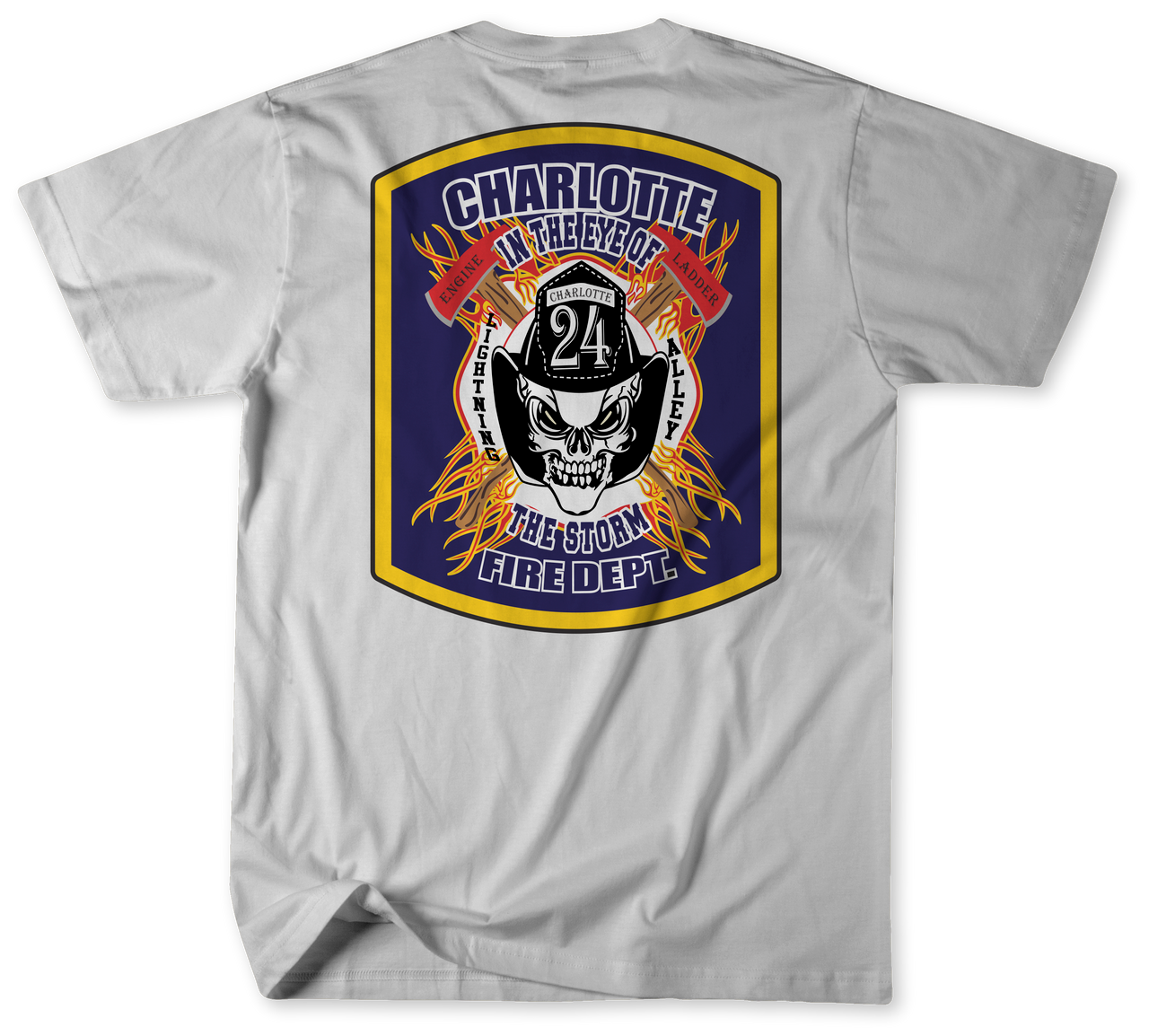 Show your pride and admiration for Engine 24 and Ladder 24 with this Unofficial Charlotte Fire Department Fire Station 24 Shirt. It may not give you any extra strength in battle, but it'll sure make you look fly while you fight those flame