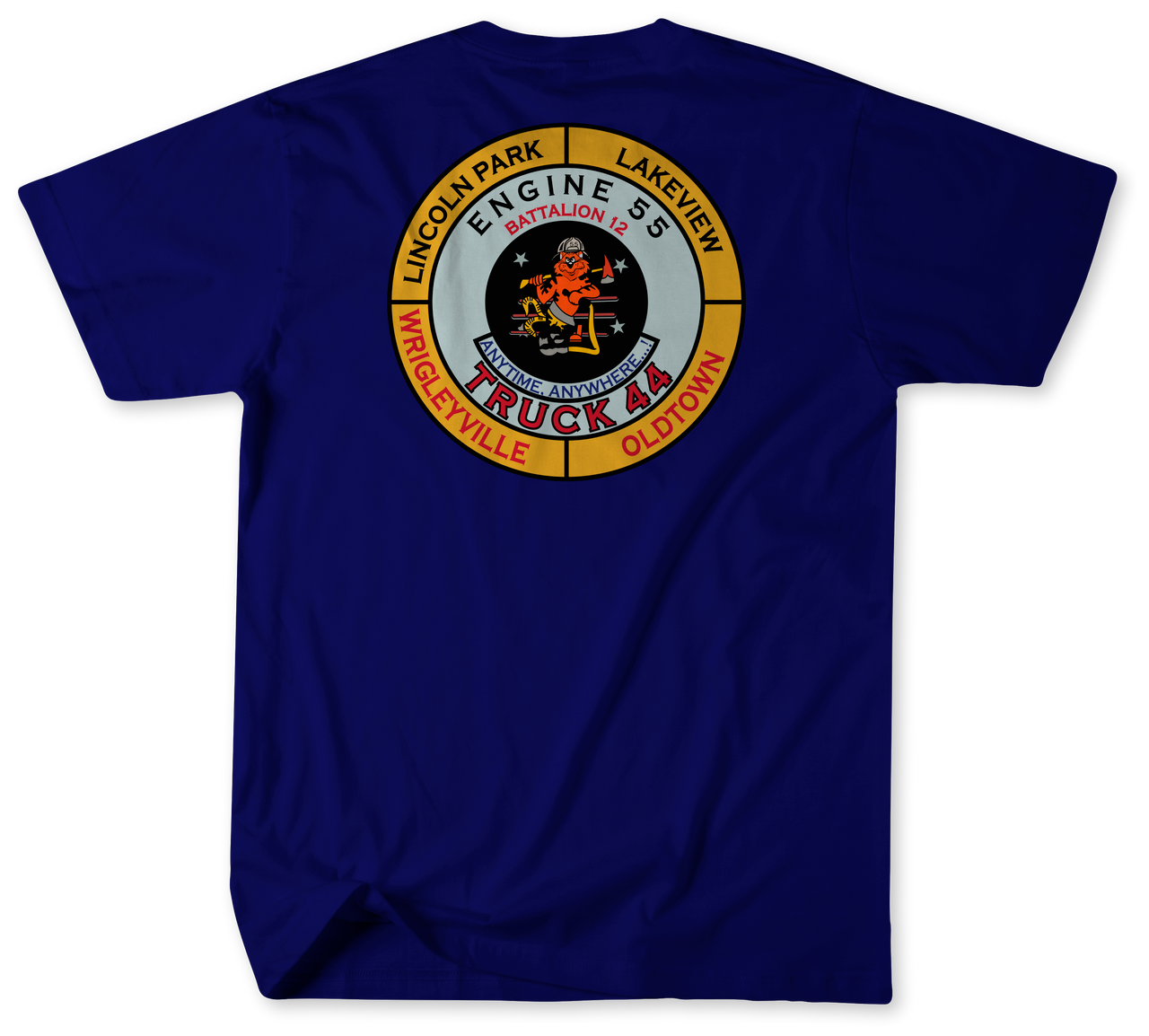 Welcome to Chicago Fire House 55! Home of Engine 55, Truck 44 and Battalion 12 - these firefighters proudly serve the Lincoln Park neighborhood. And now you can show your support for their dedication and courage with this great shirt. Crafted from a durable Gildan Ringspun fabric, this shirt hugs your body just right - keeping you comfortable and representing your favorite fire station in style. Show off your moves (and maybe even get some whistles) when folks notice your proud symbol of Fire Station 55 displayed on the fitted shape! So wear this with pride and celebrate all that Chicago firehouse 55 stands for. Lift it up, fight fire with fire in this great new piece of apparel!