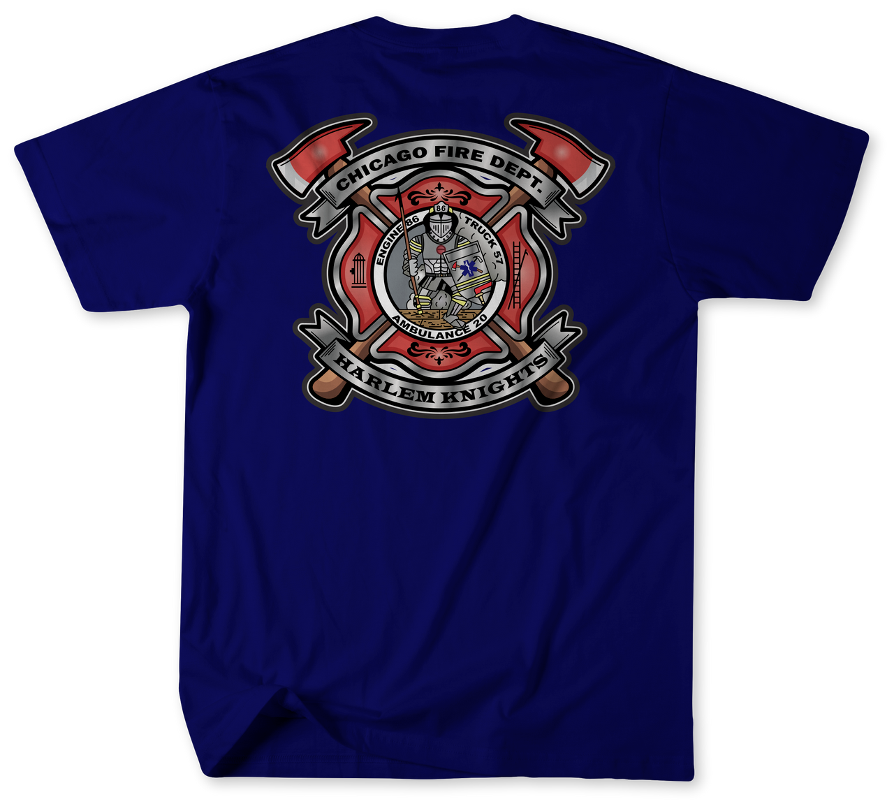 When the alarm goes off, Chicago Fire Department Fire House 86 needs to be ready to respond to any call. Gear up with this perfectly chill top, paying homage to this firehouse’s long-standing tradition of coming together when things heat up. Featuring a classic fit, the premium Gildan Ring spun Cotton Shirt is comfortable enough for any shift. It’s embedded with the names of Engine 86, Truck 57 and Ambo 20 that proudly serve the Neighborhood of Dunning. Making sure that mighty heroes stay loose – it’s time to honor the firefighters who risk their lives every day. Get your Chicago Fire Department Fire House 86 Shirt today!