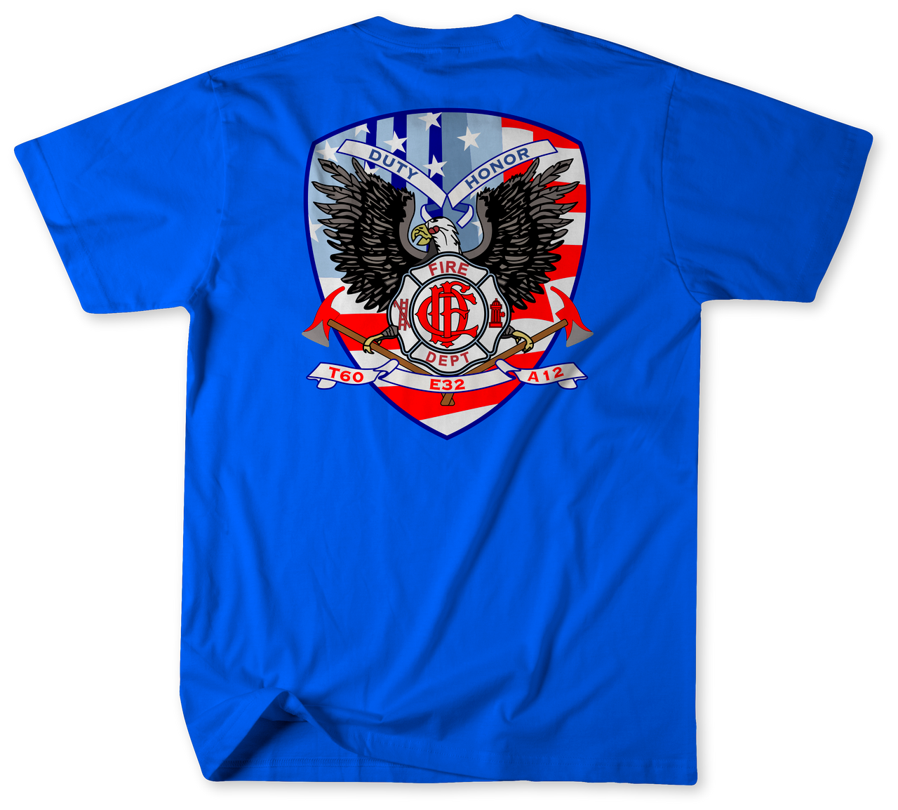 Support your local Chicago Fire Department with this Station 32 Shirt! Proudly made from Gildan Ring spun Cotton Shirts, the graphic proudly displays the logo of Firehouse 32 with the words 'Home of Engine 32, Truck 60 and Ambo 12' printed beneath. Get on board and show off your pride in your first due territory - Garfield Ridge - with this amazing piece of clothing! Perfect for firefighters everywhere, this comfortable shirt is sure to become a wardrobe staple. So don't hesitate - grab it now and share the solidarity of Firehouse 32!