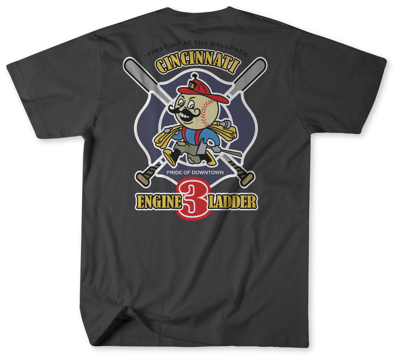 Make a statement when you wear the Unofficial Cincinnati Fire Department Station 3 Shirt! This stylish, comfortable shirt is your badge of honor signifying your service to the Cincinnati firefighter community. Its unique design pays tribute to the brave people and resources of Firehouse 3--Engine 3, Medic 3, Boat 3, District Chief 1 and Ladder 3. You'll feel proud knowing that you're representing the heroic souls who guard Downtown Cincinnati, including the great American Ball Park. You'll also appreciate the quality of the product, made from Gildan Ring Spun Shirts! So rep your firehouse and show your firefighter pride in an Unofficial Cincinnati Fire Department Station 3 Shirt today!