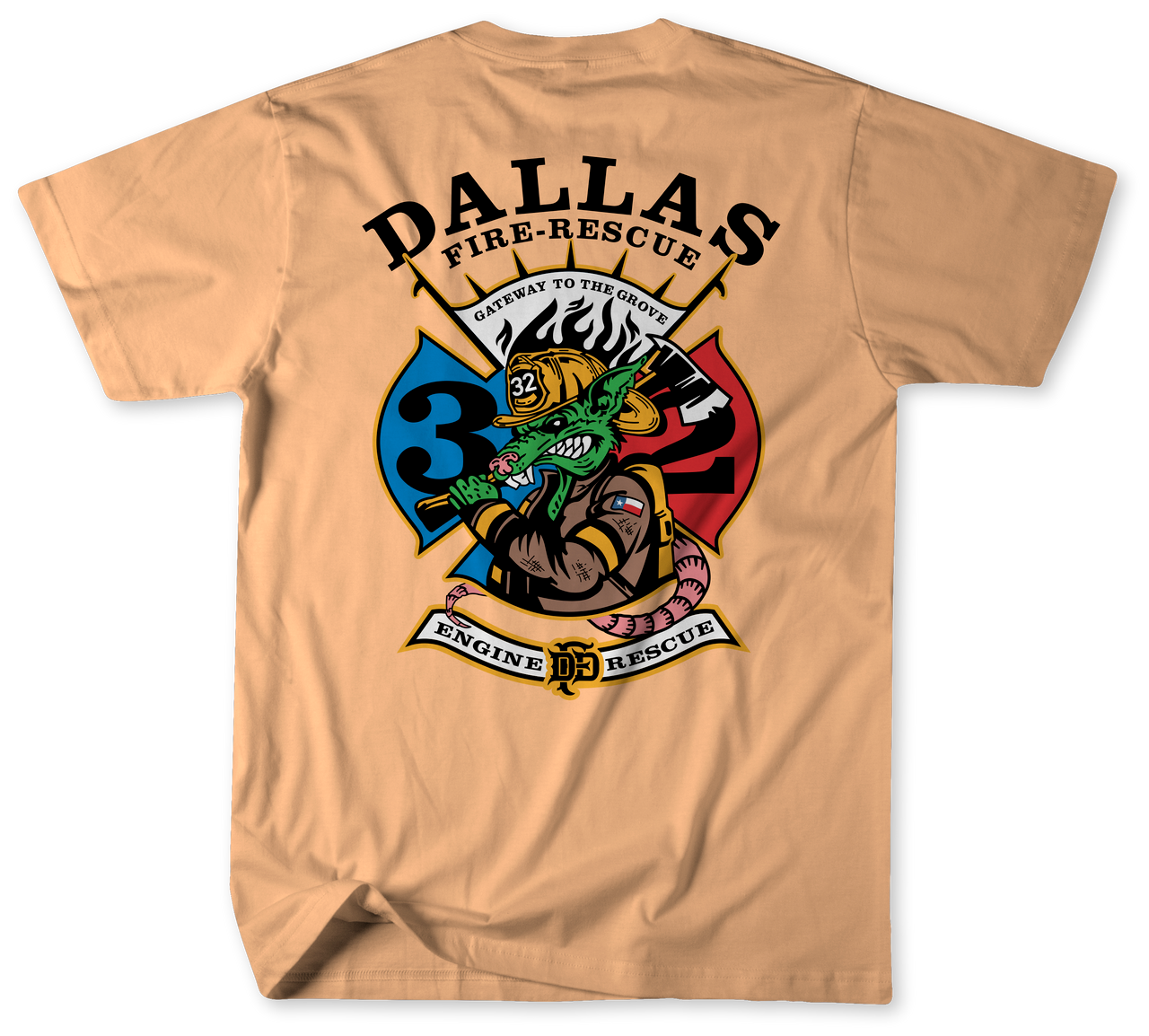 Calling all Dallas firefighters! Introducing the Unofficial Dallas Fire Rescue Fire Station 32 shirt – a must-have for any proud firefighter. Show your love and respect for both Engine 32 and Rescue 32, while proudly displaying the station’s slogan “Gateway to the Grove” on your chest. Made from Gildan Ring spun shirts, this amazingly comfortable creation is available in 11 colors that range from bold blues and inviting greys to ferocious oranges and classic blacks – simply pick out your favorite and stand out amongst the rest! Not only will you look sharp but also complete with a tinge of wit that comes along with wearing official Dallas Fire Rescue gear. So what are you waiting for? Get ready to experience infinite convenience, unrivaled comfort, and undeniable style and let your firefighting spirit do all the talking by owning a Unofficial Dallas Fire Rescue Fire Station 32 shirt today!