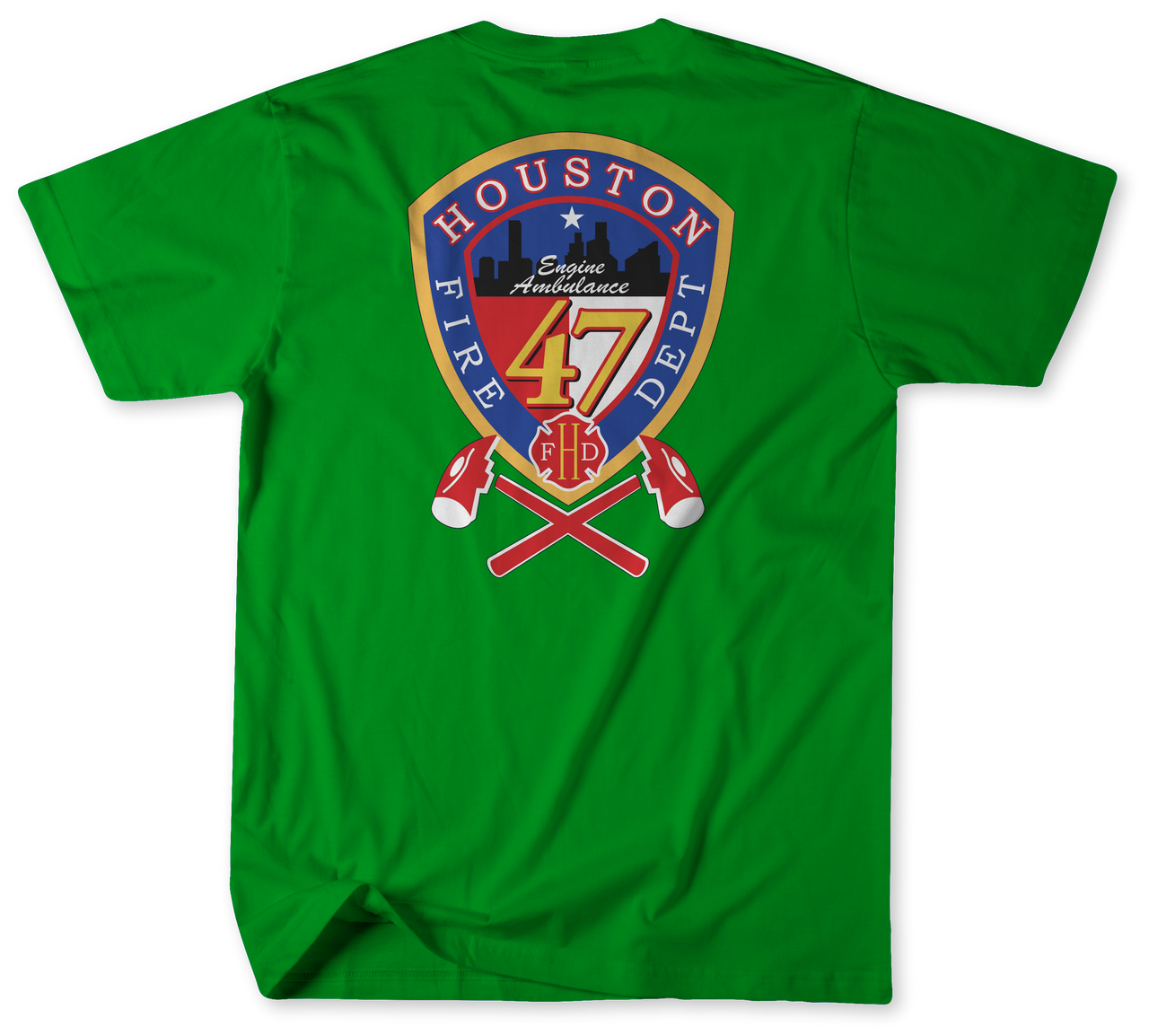 With 11 vibrant colors to choose from, the Houston Fire Station 47 Shirt caters to your personal style and preference. Whether you prefer classic black or navy for a sleek look, or a bold red or green to stand out, there's a color for every taste. The versatile options make it easy to pair with your favorite jeans, shorts, or even uniform pants, allowing you to express your pride in a way that suits you.