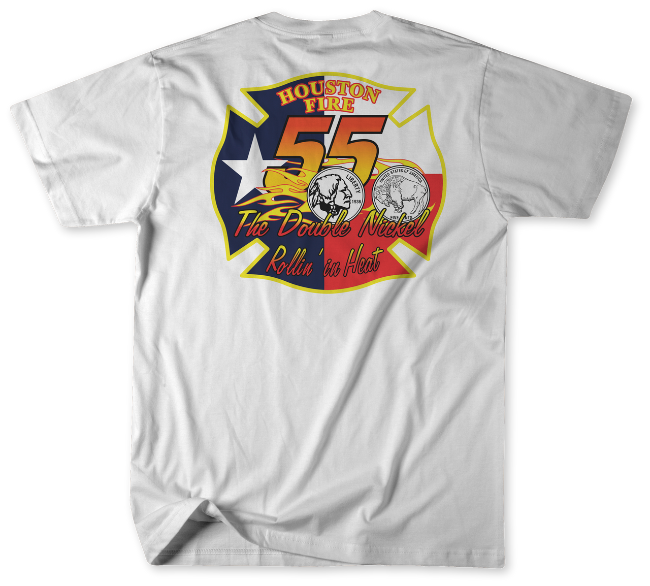 Loading... Please wait...Imagine wearing a shirt that not only feels incredibly soft on your skin but also proudly represents the bravery and dedication of one of Houston's finest fire stations—Fire Station 55, fondly known as the Double Nickel. Whether you're a firefighter, a Houston resident, or a supporter of our courageous first responders, this shirt is more than just a piece of clothing; it's a symbol of community and valor.
