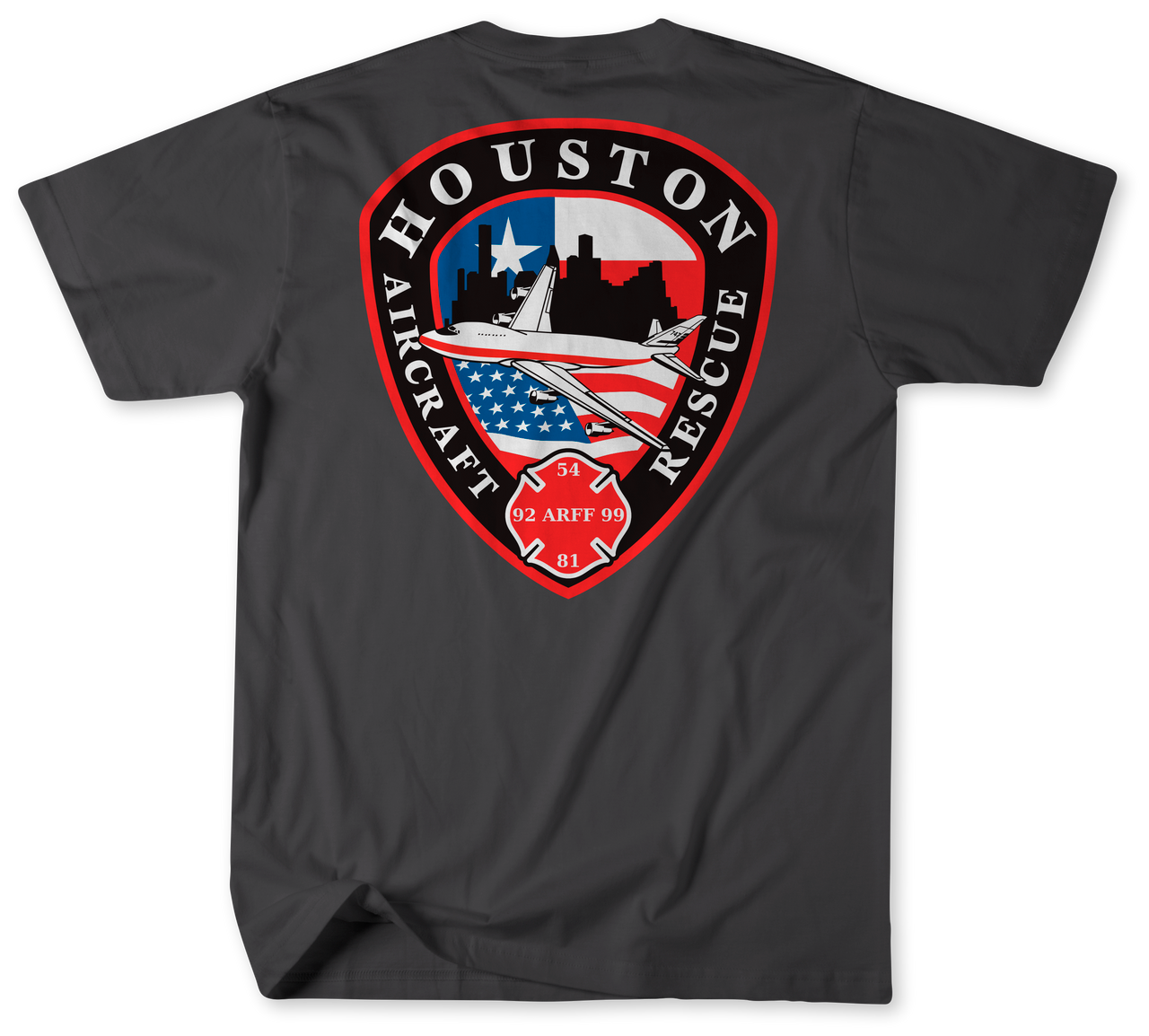This isn't your average t-shirt. Created by firefighters for firefighters, it's a tribute to the camaraderie and bravery that define the brotherhood and sisterhood of the fire service. Each shirt features a logo inspired by an authentic patch—a symbol of the proud tradition of Station 81, home to the elite ARFF (Aircraft Rescue and Firefighting) unit serving William P. Hobby Airport.