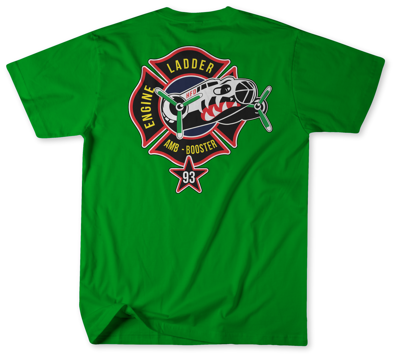 Authentic Design: The shirt features a meticulously crafted logo, inspired by an actual patch found at Station 93, celebrating the courage and resilience of its units—Engine, Ladder, Ambulance, and Booster 93. Every time you wear it, you carry a piece of the station’s history.