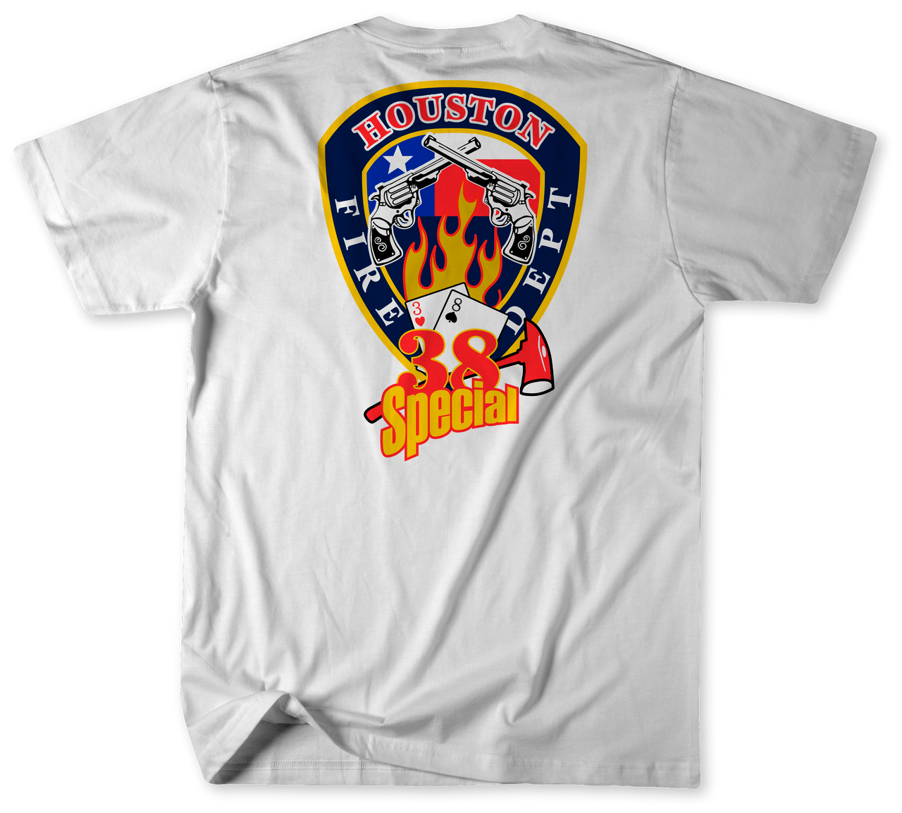 This shirt isn’t just fabric and thread; it’s a tribute to the men and women of Houston Fire Station 38. Home to Engine 38, Ladder 38, and Ambulance 38, this station represents the heart of the community. Each shirt replicates a patch we found, giving it a unique, authentic feel that's steeped in history and valor. While it may not be the official logo, it embodies the spirit and dedication of our firefighters.