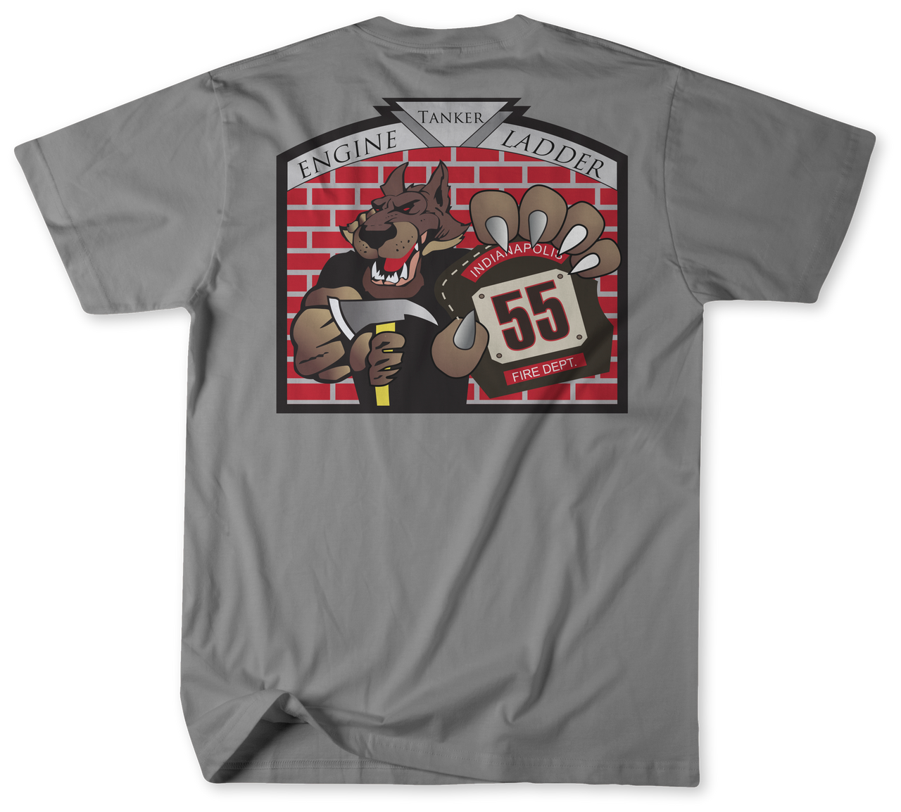 Are you ready to sizzle like a flame? Look no further than our gorgeous Indianapolis Fire Department Station 55 shirt! It's the perfect way to show your pride and support for your favorite fire station. This handsome shirt features a classic design, complete with the words "Wamaker's Finest!" boldly printed across the back - sure to give any onlookers a good chuckle! And that's not all! Our fire station shirt also includes the logo of Engine 55, Ladder 55, and Tanker 55. Now you can represent Wanamaker's bravest in distinctive style. Plus, these shirts are crafted from Gildan ringspun cotton for maximum comfort, while coming in an array of stunning colors. So don't miss this chance to look hot while keeping cool: get your Indianapolis Fire Department Station 55 Shirt now!