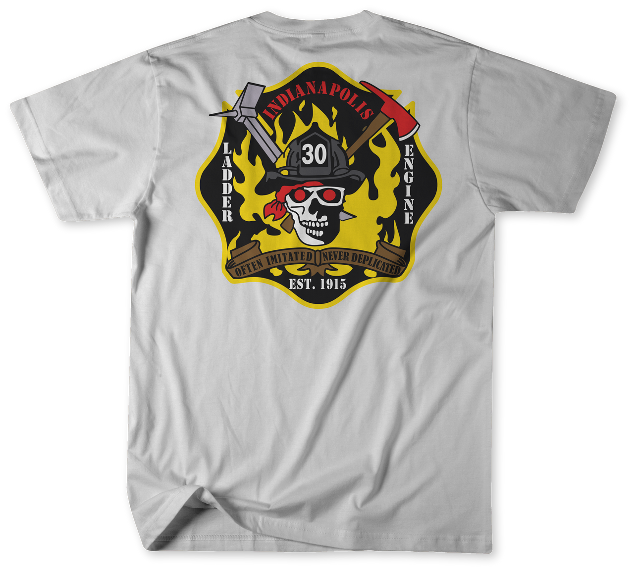 Welcome to Indianapolis Fire Department Station 30, saving Eagledale and beyond since 1899! Are you proud to live in the area protected by Engine30 and Ladder 30? Proclaim your commitment to safety and show off your Station 30 pride with our exclusive Indianapolis Fire Department Fire Station 30 Shirt. With its soft Gildan ringspun cotton fabric, this shirt will be sure to keep you cozy in any firefighting situation. Plus, it comes in a variety of colors that boast distinctive Eagledale-inspired designs. Wear your Indianapolis Fire Department Fire Station 30 Shirt with honor; it’s a subtle way to show gratitude for your local heroes.