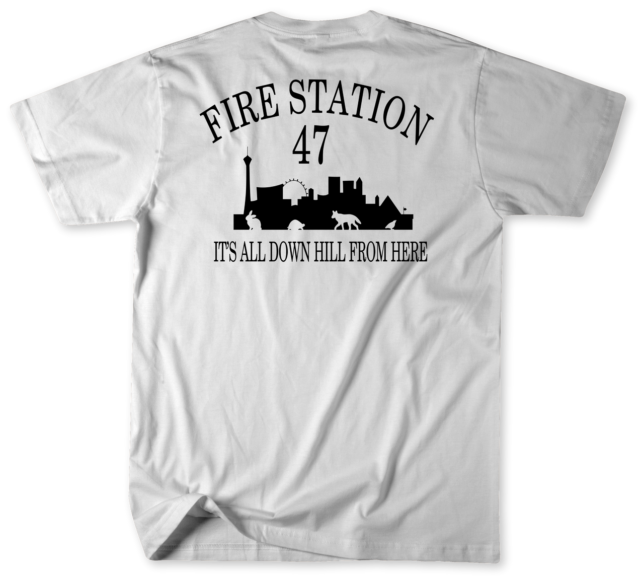 The Las Vegas Fire Rescue Station 47 Shirt proudly features the station logo, a unique emblem representing Engine and Rescue 47. While it may not be the official insignia, it captures the spirit and brotherhood of Station 47—a testament to the bravery and unity found within its walls.