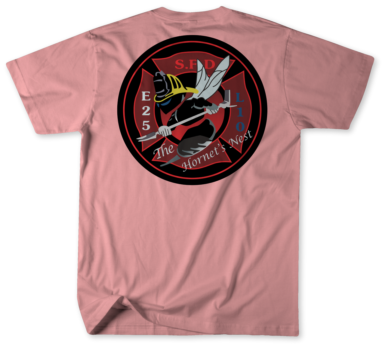 Warning: Seattle Fire Department Station 25 shirts may be habit-forming. It's hard to resist the call of duty when you see this big, red brick firehouse looming in the Capitol Hill neighborhood. Home to Engine 25, Ladder 10, Aid 25 Vent 1, Power/CO2 Unit 25, Vault 1, and Battalion Chief 2, this station is always busy responding to emergencies. But that's not all that's going on here. At Seattle Fire Department Station 25, they take their shirt game very seriously. Made of soft, ring-spun cotton, these shirts are comfortable enough to wear on long shifts and look good enough to turn heads when you're out on a call.