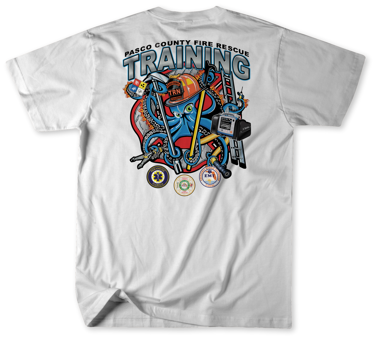 The Pasco County Fire Rescue Training Center, located in Brooksville, Florida, is where every Pasco County firefighter sharpens their skills and prepares to serve the community. Wearing this shirt is a tribute to the dedication, discipline, and commitment of those who train to protect and save lives.