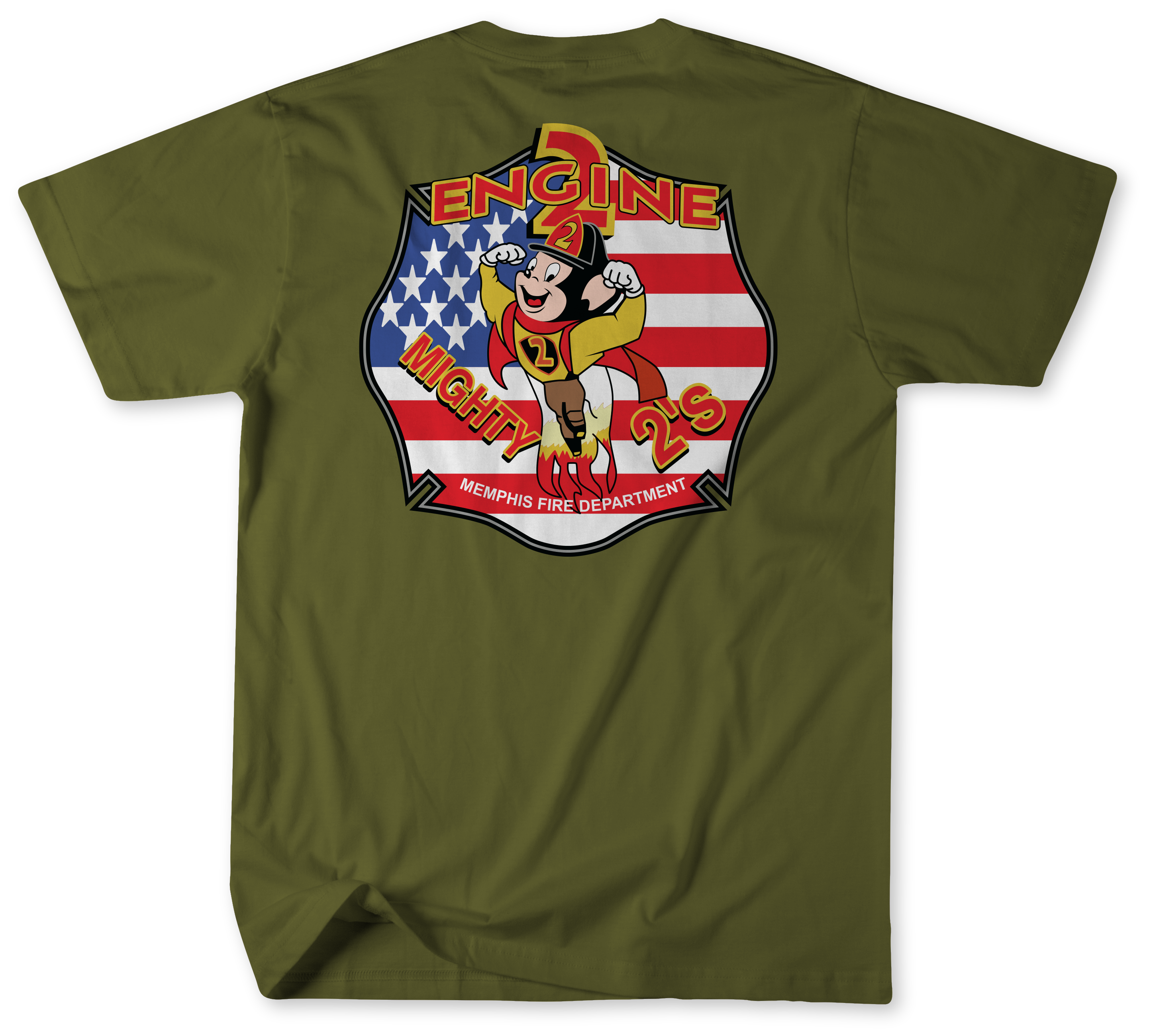 Station 2—home of Engine 2 and Battalion Chief 1—represents dedication, teamwork, and strength in every call they answer. This design honors the station’s legacy and spirit, featuring premium print quality that captures the pride of Memphis Fire Services. Available in 8 colors, this shirt is perfect for on-duty wear, off-duty pride, or as a collectible addition for fire service enthusiasts.