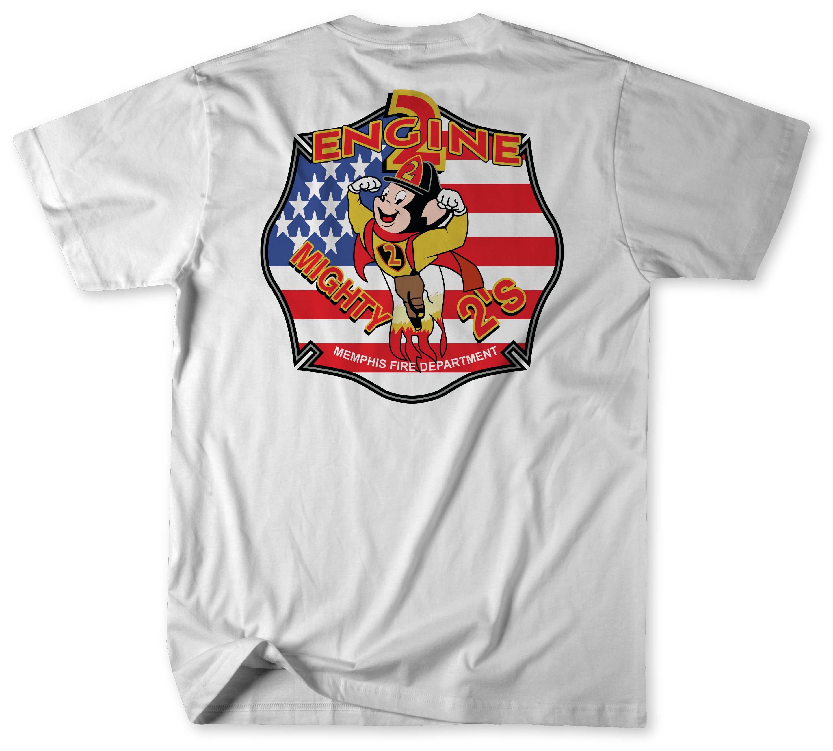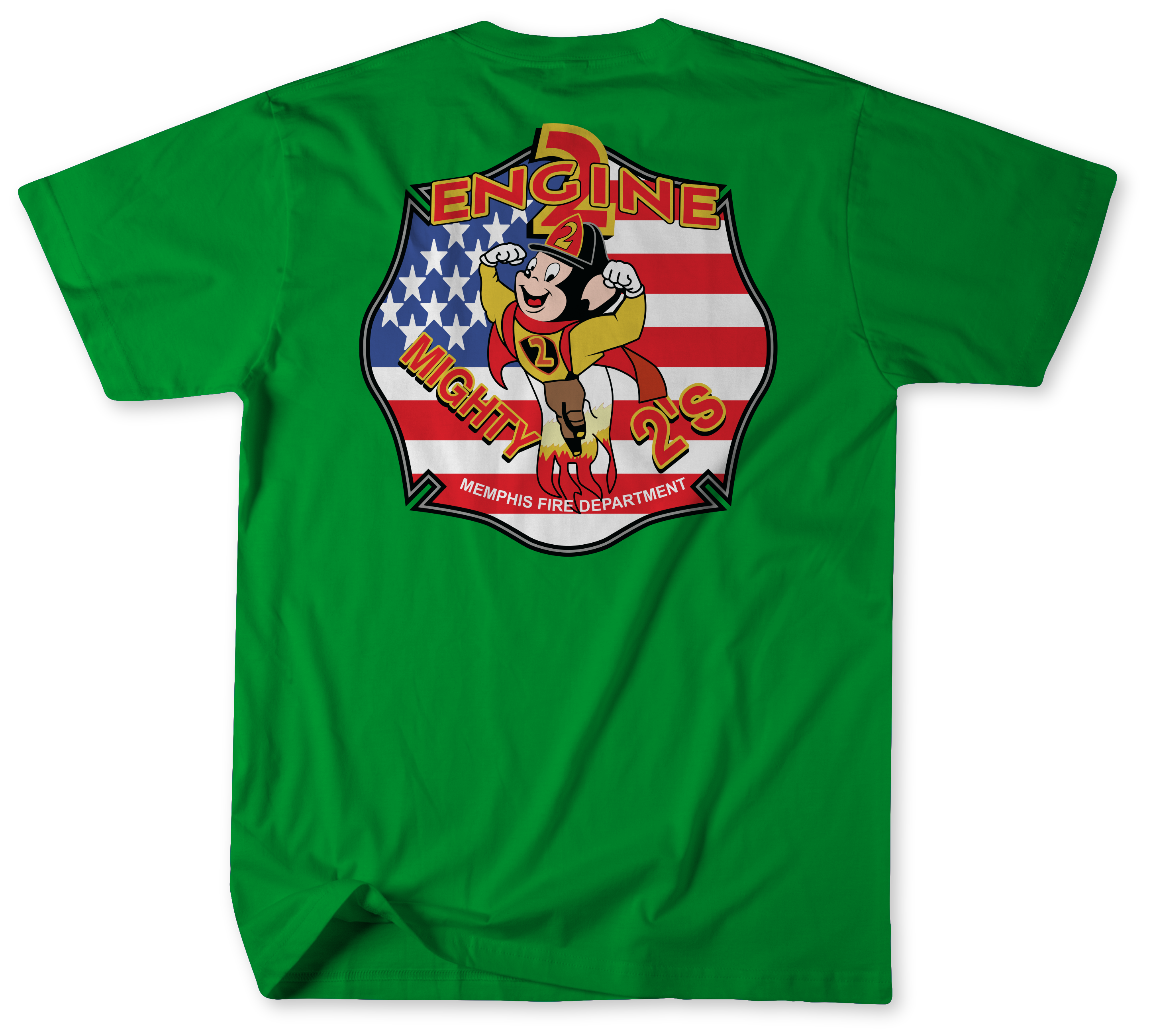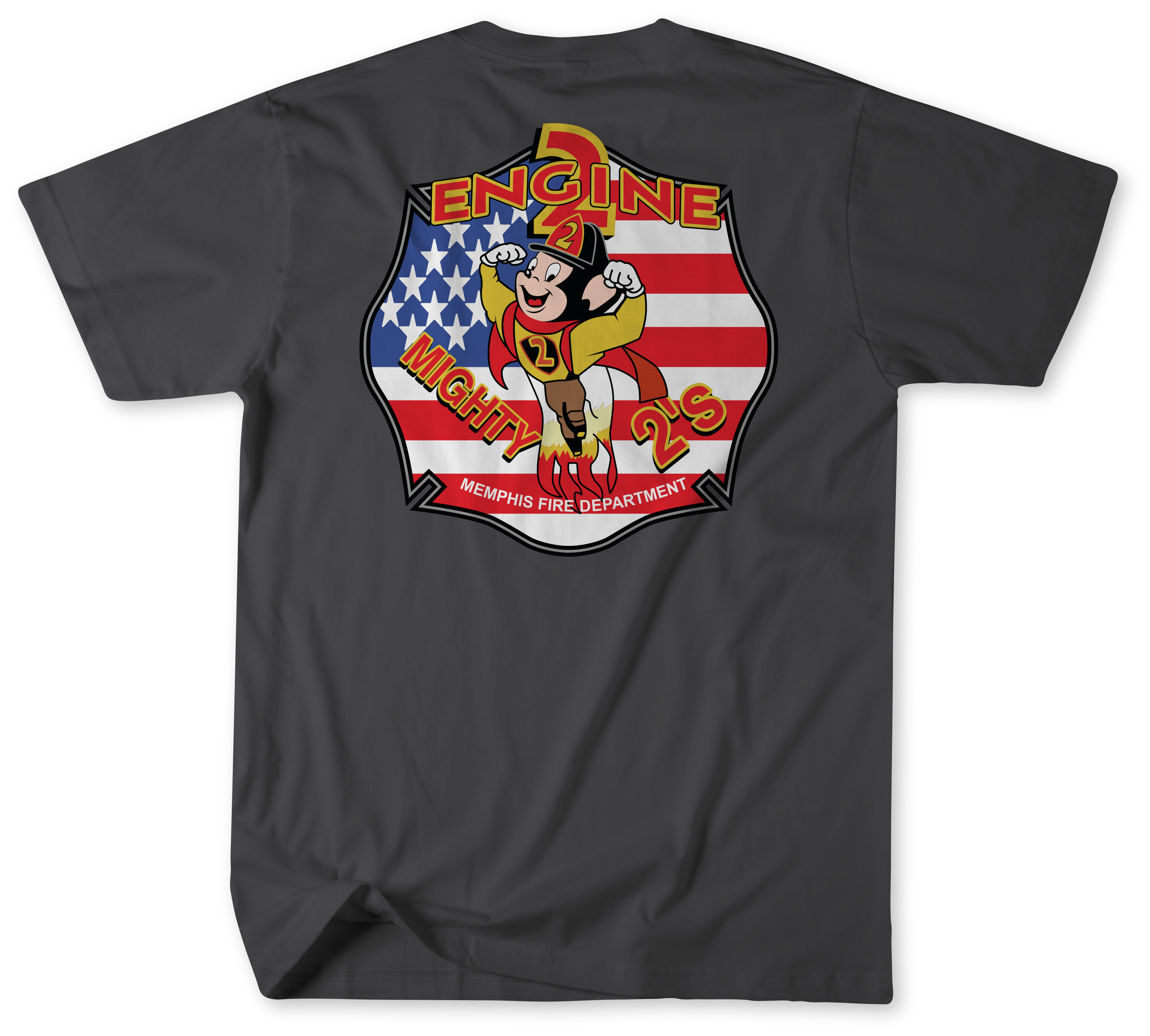 Designed to celebrate Memphis Fire Services Station 2, home of Engine 2 and Battalion Chief 1