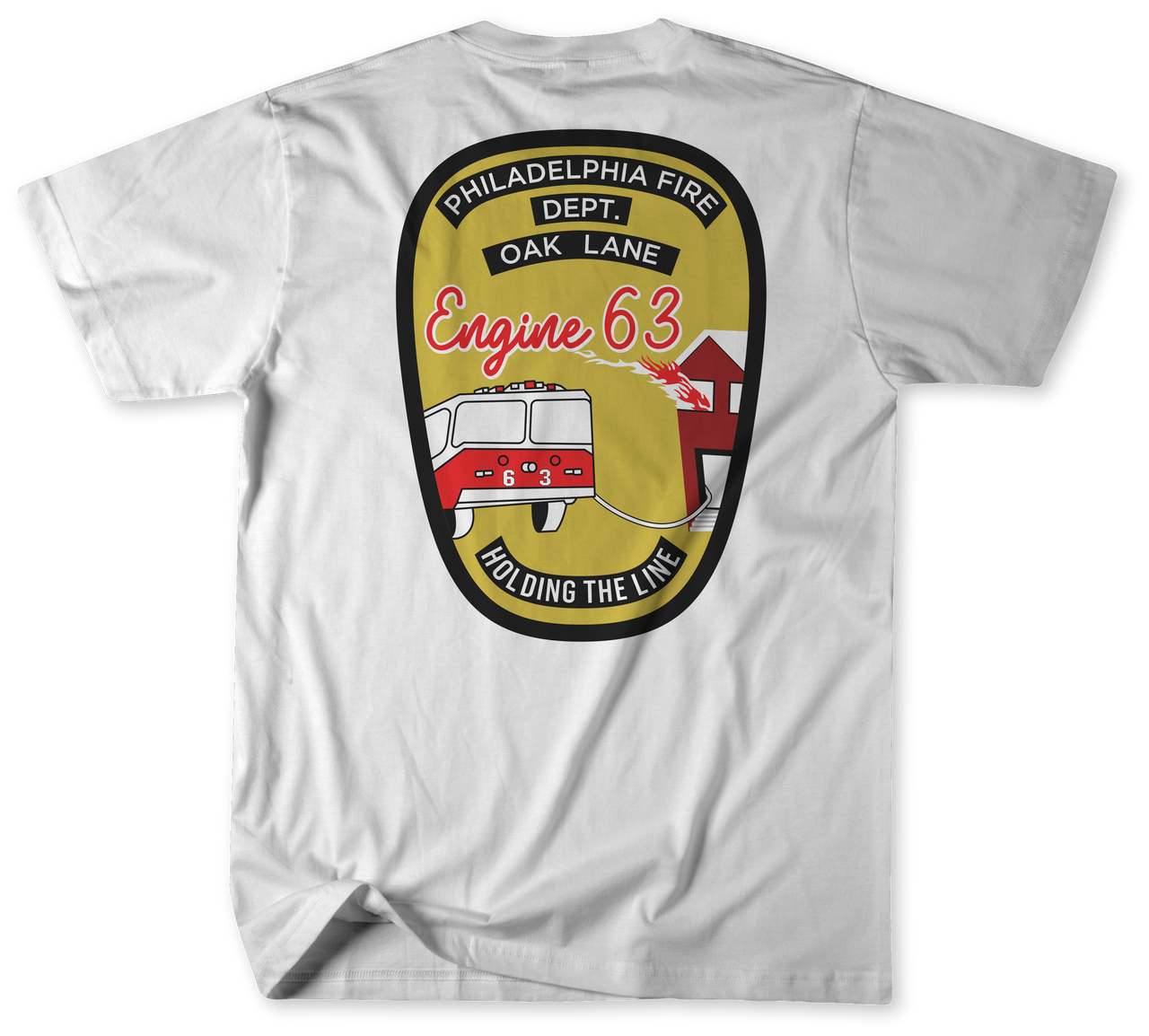 Loading... Please wait...Celebrate the bravery and dedication of Philadelphia Fire Department’s Engine 63 and Medic 56B, proudly serving the neighborhood of East Oak Lane. This unofficial firehouse shirt captures the pride of local first responders while giving firefighters, families, and community members a chance to show support.