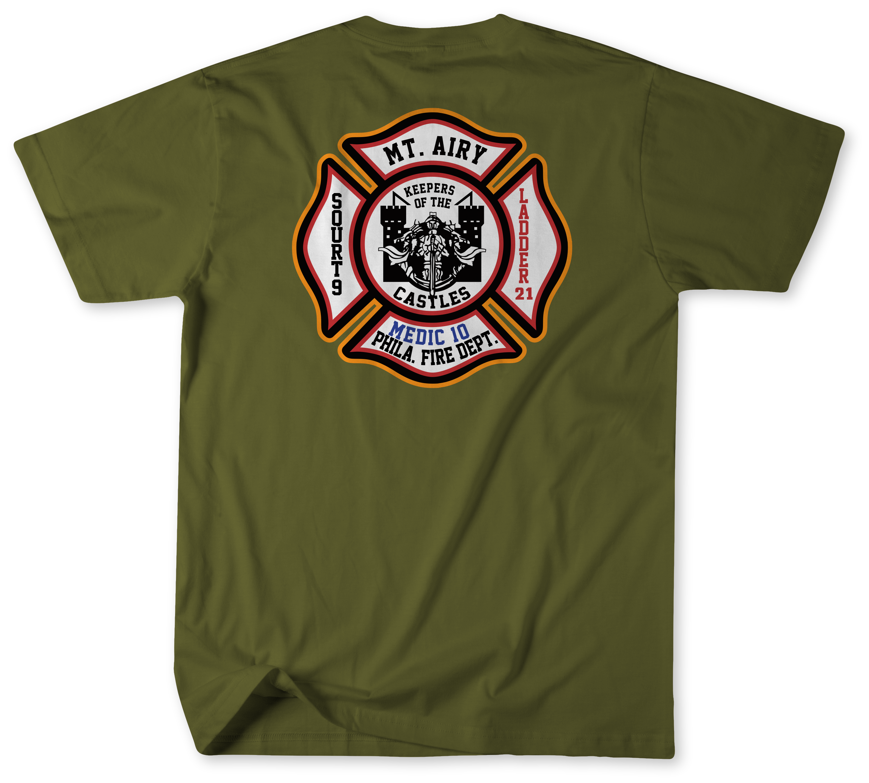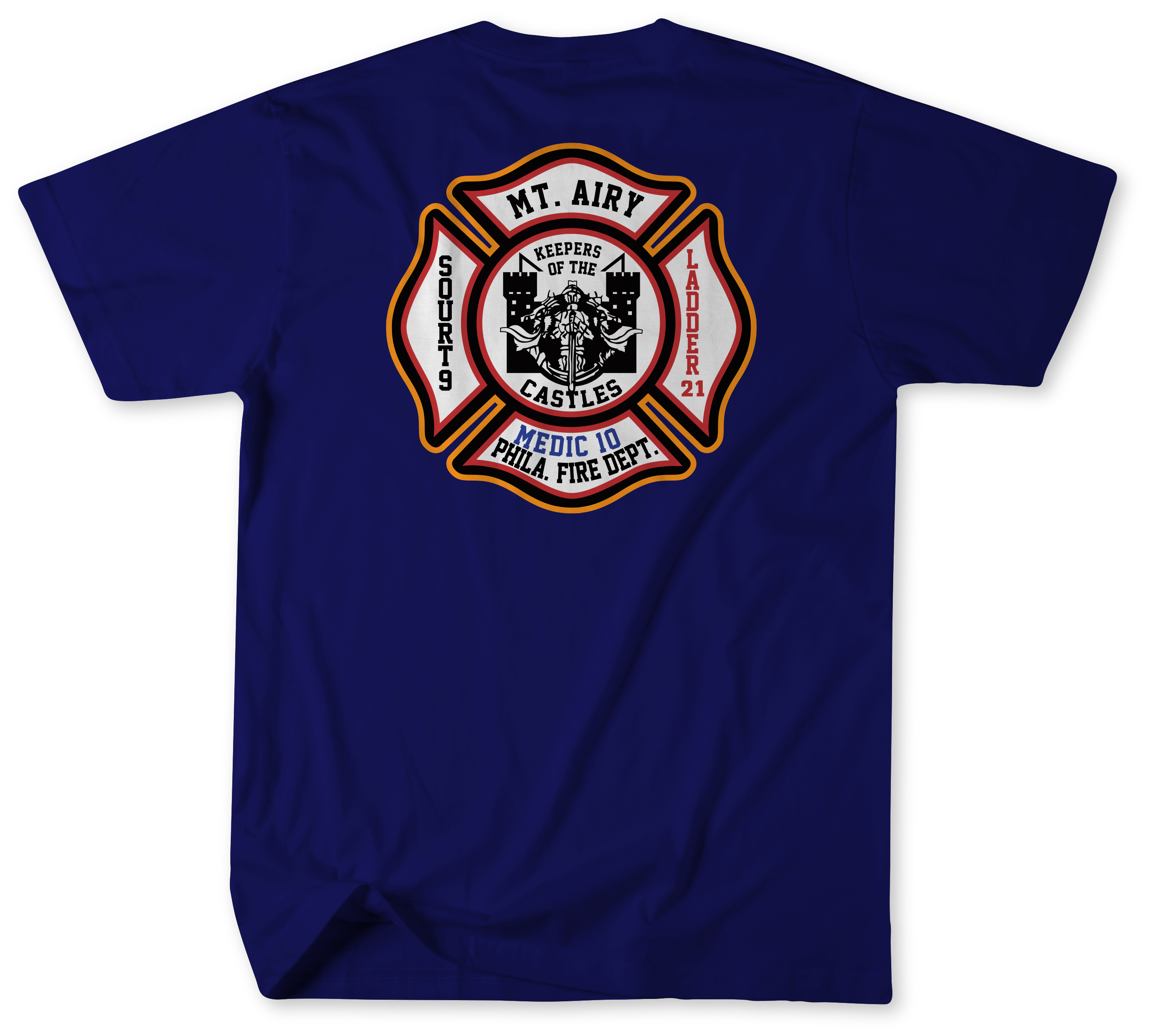 The companies of Squrt 9, Ladder 21, and Medic 10 are an integral part of the Mount Airy community. This shirt is more than apparel—it’s a tribute to the firefighters who answer the call day and night.