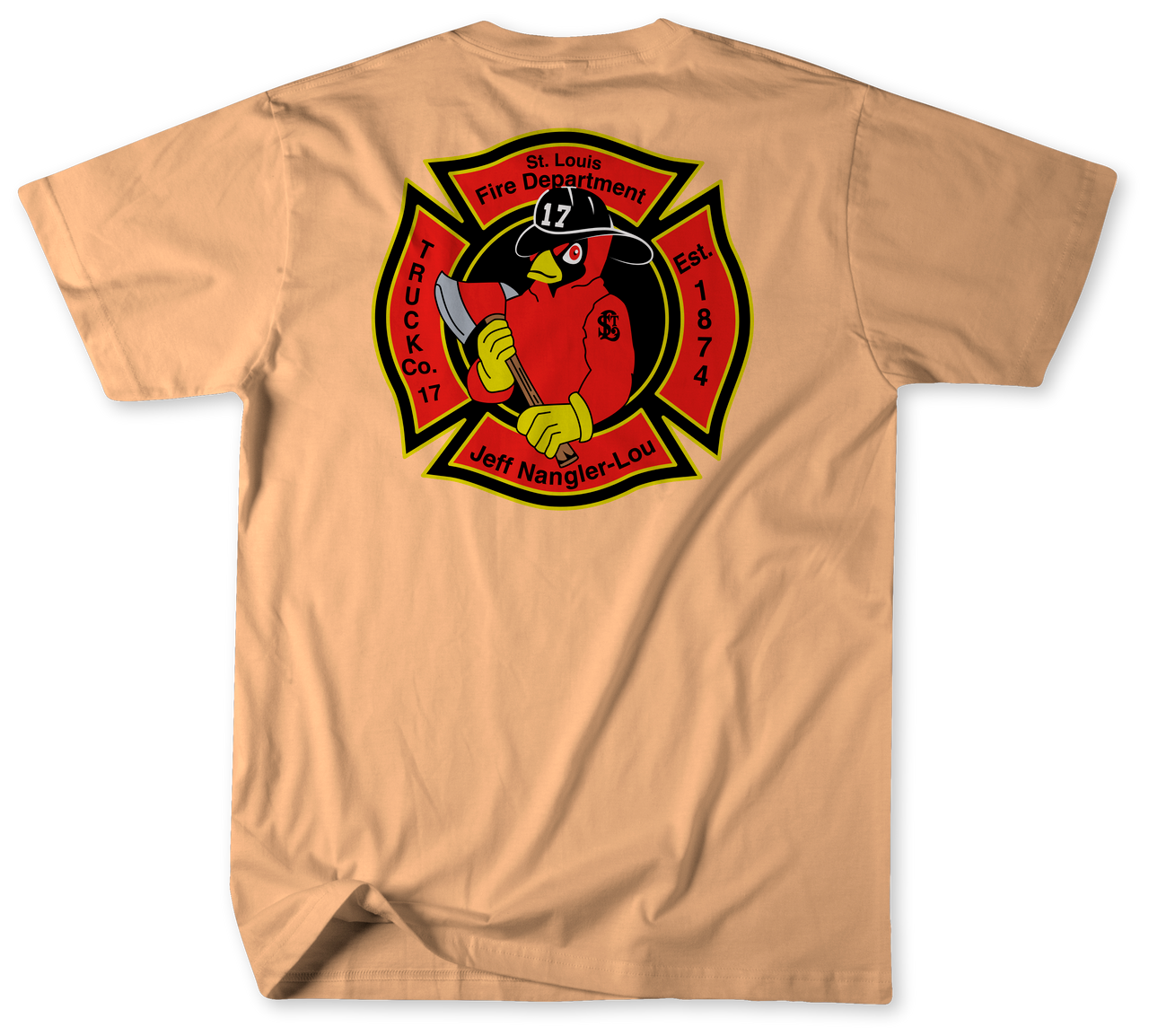 Station 17 is home to Truck 17, proudly serving the vibrant Grand Center neighborhood. This shirt honors the crew’s commitment and the community they protect, making it a meaningful addition to your collection.